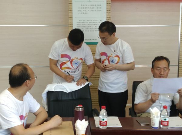 上午九时许,返校员工陆续到达友谊校区williamhill英国威廉希尔402教室,签到、穿上纪念衫、佩戴校徽,三五成群,欢声笑语。随着一张张熟悉脸庞的出现,时间瞬间穿越回到了二十年前。