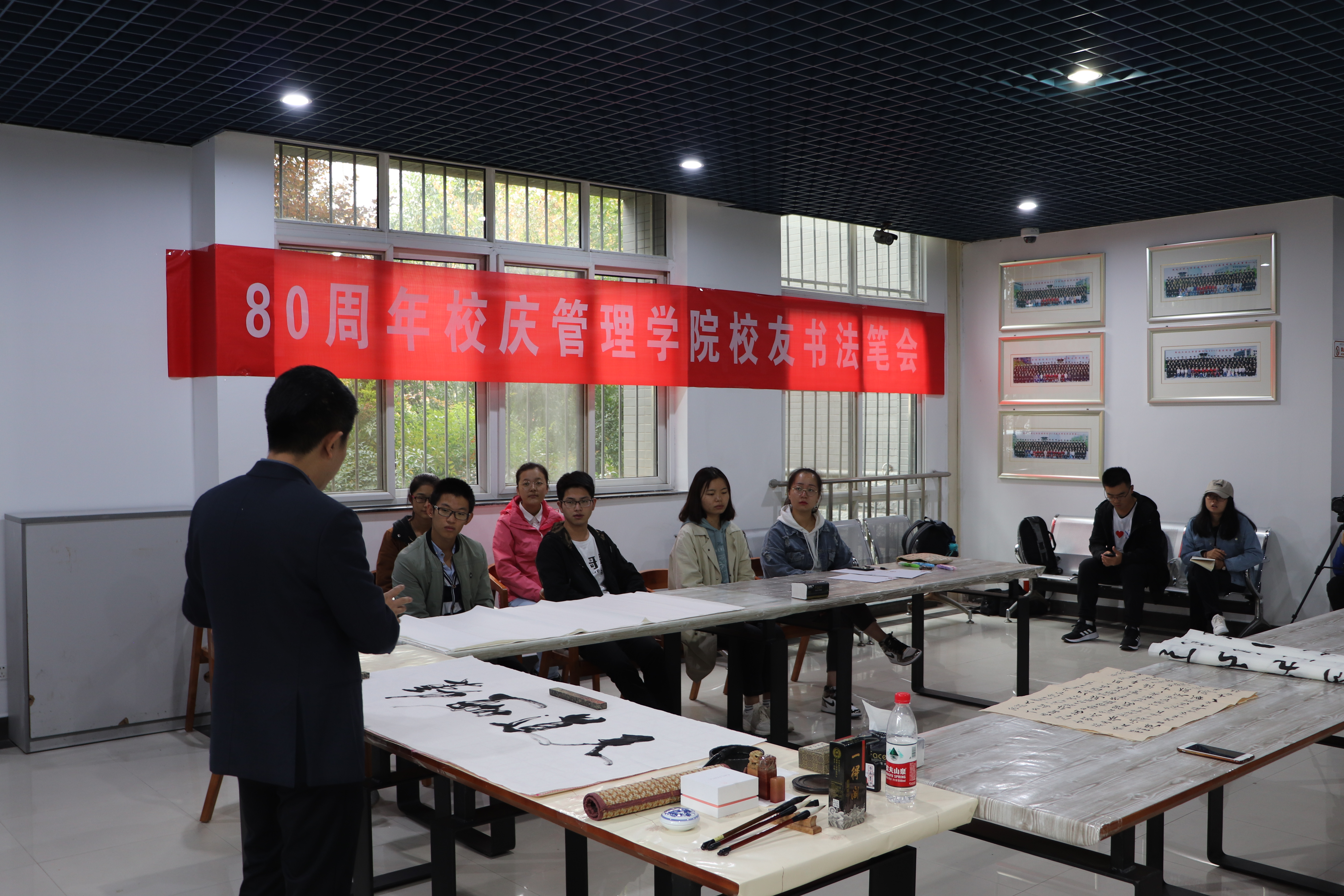 首先,余康员工以“天道酬勤”这四个字开篇,向到场同学们展示了书法中蕴含的人生道理。接下来,他阐述了自己理解的书法真谛。即书法是表达作者情绪的途径,是作者与读者产生共鸣的一种媒介,书法的表现形式也是多种多样,每个人都有自己不同的理解和风格。而一幅“公诚勇毅”的作品,则表现出员工对母校80周年华诞的美好祝福。