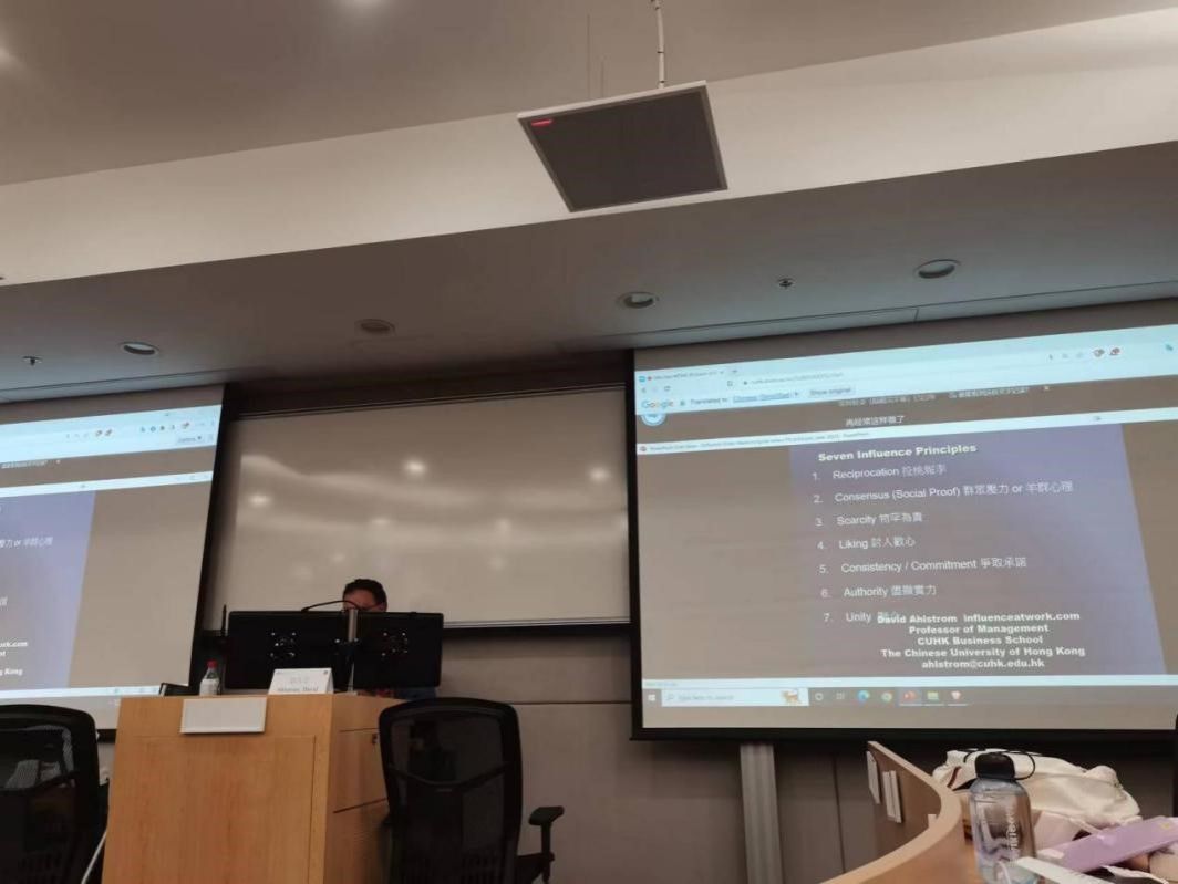 香港中文大学管理学系教授David Ahlstrom主要围绕“Six Influence Principles”展开课堂,他为同学们介绍了许多社会实验,让大家通过实验结果寻找规律,启发了员工对于如何合理有效进行营销的思考。