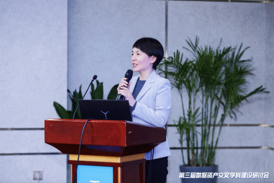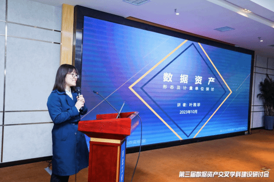 后半场主题报告由山西财经大学袁春生教授主持。第三场主题报告是上海市数据科学重点实验室数据资产研究室主任叶雅珍博士的“数据资产形态及计量单位探讨”。叶博士在简要回顾中国数据产业发展的基础上,分析了当前数据资产入表存在的难点与挑战,特别是数据资产价值评估方面,她认为在基于传统的“成本法、收益法和市场法”进行评估的基础上,应探讨专门的评估模型用于数据资产的价值评估。在数据资产形态方面,叶博士提出用于数据集标准化的“数据盒”概念,并详细阐述了“盒装数据”的特征和优势。