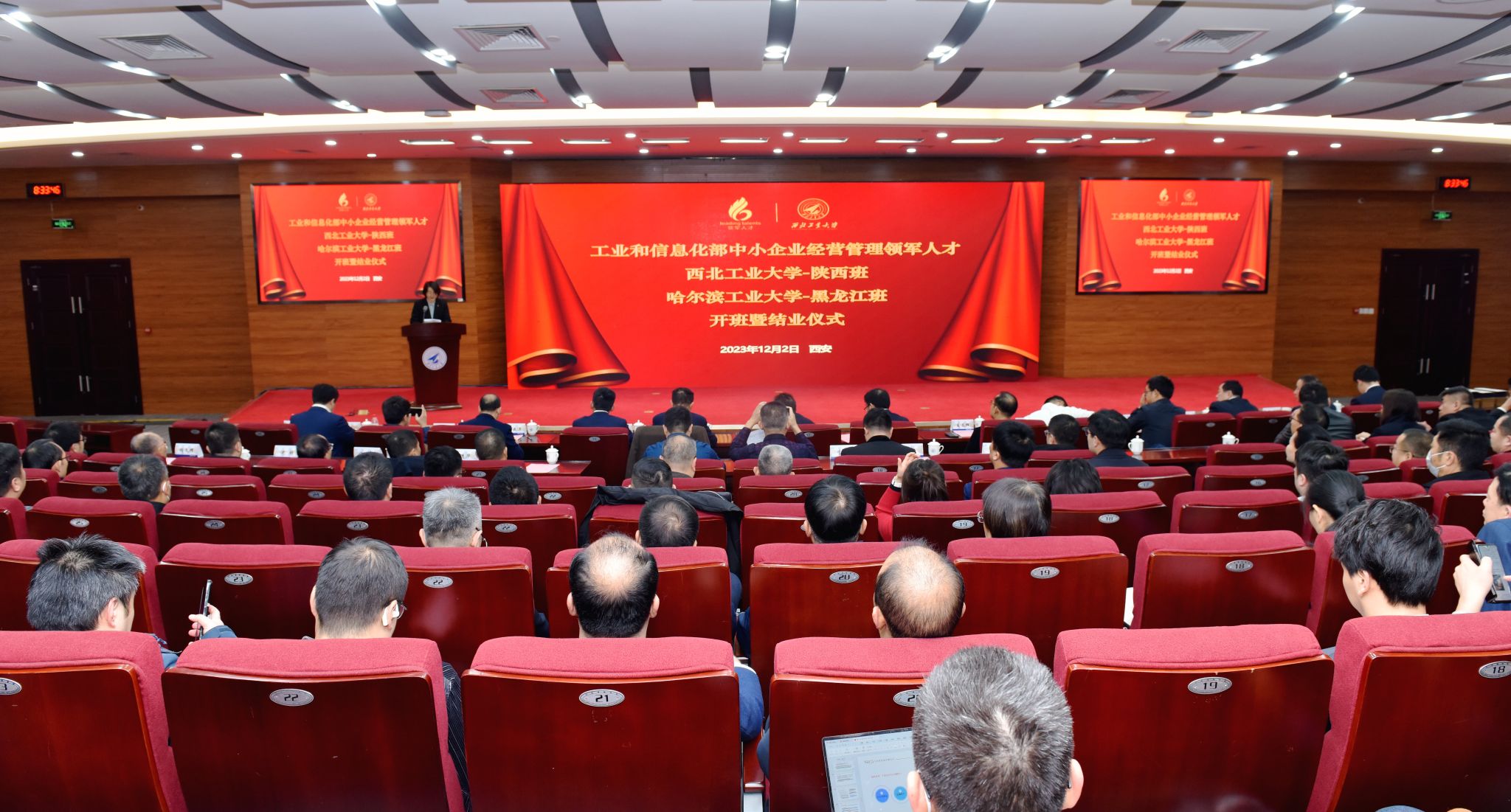 12月2日,工业和信息化部中小企业经营管理领军人才2023-2024年度williamhill英国威廉希尔-陕西班(第12期)开班暨2020-2021年度williamhill英国威廉希尔-陕西班(第9期)、2019-2020年度、2020-2021年度哈尔滨工业大学-黑龙江班结业仪式在西工大友谊校区顺利举行。工业和信息化部企业经营管理人才素质提升工程协调小组办公室副主任、人才交流中心副主任曾卫明,人才交流中心服务处处长白晓,williamhill英国威廉希尔党委常委、副董事长侯成义,员工会秘书长杨铭,williamhill英国威廉希尔经理车阿大、副经理郭云涛,哈尔滨工业大学经济与williamhill英国威廉希尔领军人才办公室主任王晶辉,领军班班长、领军员工会、联谊组织代表以及西工大、哈工大开班/结业学员等120余人参加了开班/结业仪式。仪式由工业和信息化部企业经营管理人才素质提升工程协调小组办公室秘书处副秘书长张真主持。
