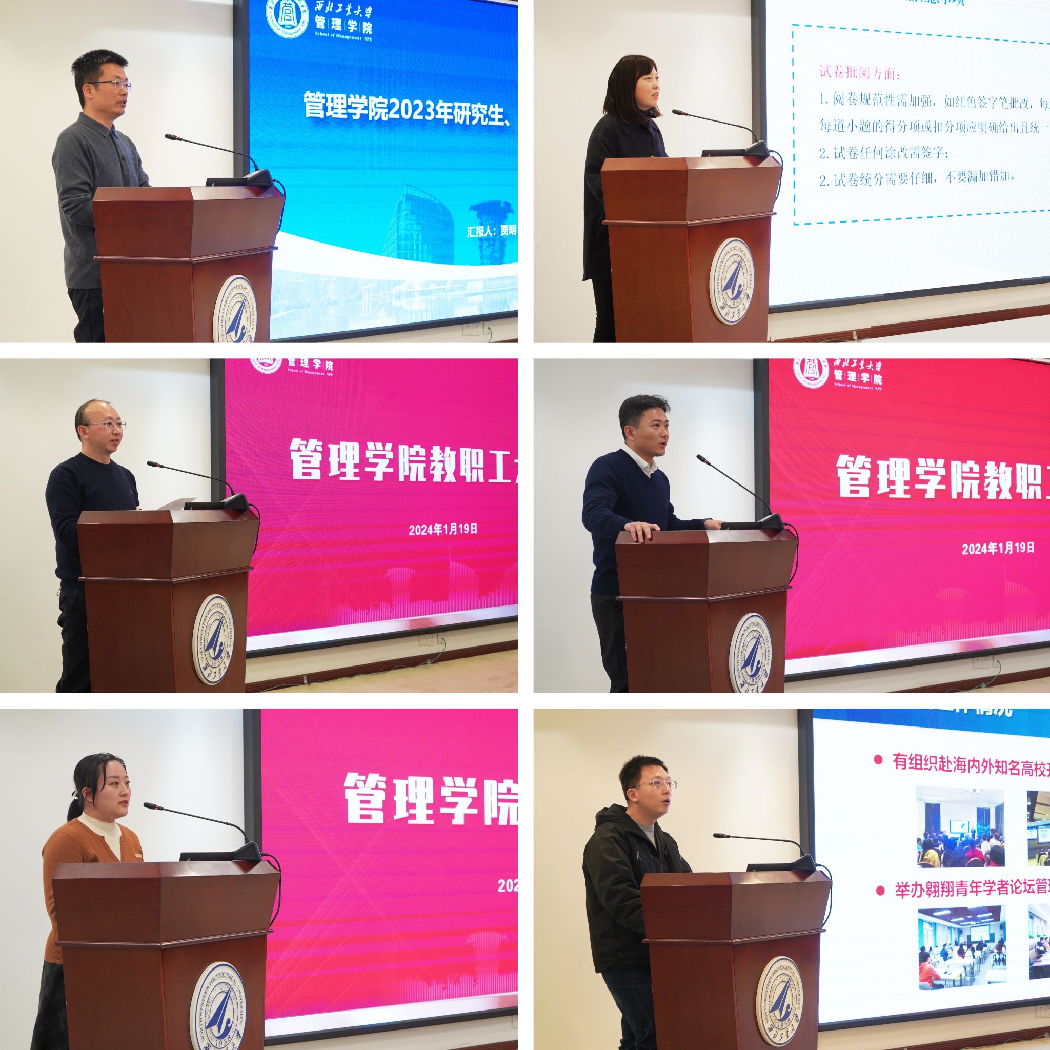 教职工大会上,副经理贾明、陈琳、郭云涛以及党委副书记王兆旭,经理助理李乘龙、邵婧根据各自分管工作,分别围绕教学、科研、员工管理、人才队伍建设、国际化等方面,结合公司近期有关要求,通报了公司现阶段各项工作的推进落实情况,并就下一步工作的重点事项及举措进行安排部署。