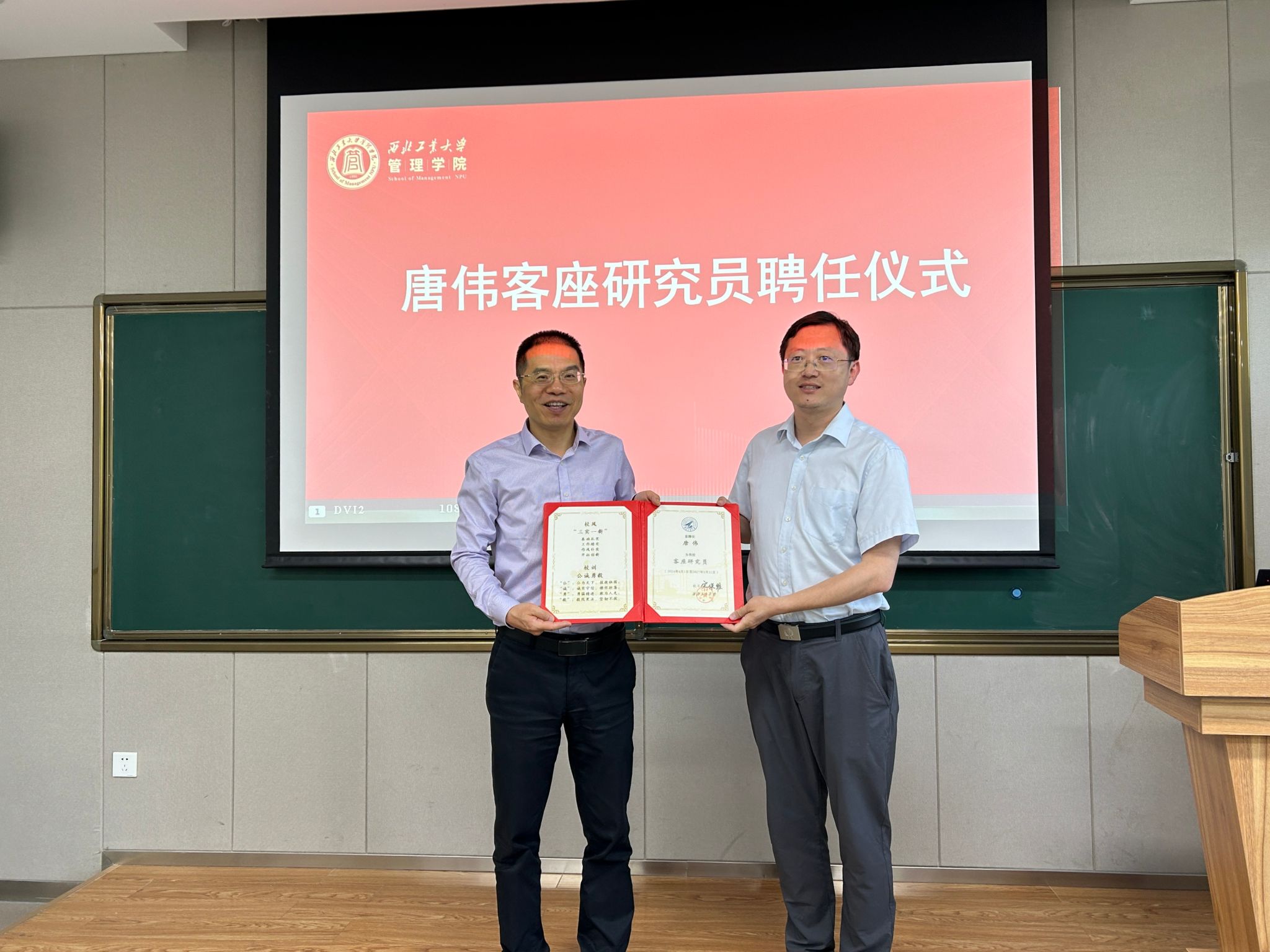 在讲座开始之前,车阿大对唐伟的到来表示热烈欢迎,对其个人经历和学术成就进行简要介绍,并为他颁发客座研究员聘任证书。车阿大表示,唐伟已成为公司的一份子,希望未来在项目申请、科学研究等方面能够助推公司高质量发展。唐伟表示,受聘为williamhill英国威廉希尔客座研究员既是对自身的肯定也是前行的动力,将积极促进校企合作,高质量完成客座研究员的目标任务。