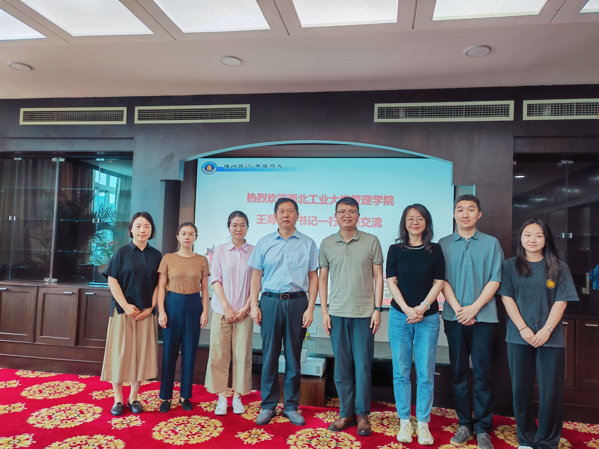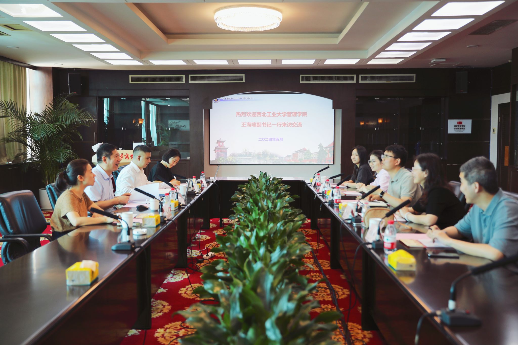在四川大学商公司,党委书记李晓峰对王海啸一行表示热烈欢迎,党政办主任巫科、员工工作办公室主任袁媛、副主任党慧丽参加了座谈会。李晓峰系统介绍了四川大学商公司的发展历程、组织架构及党建特色等内容。双方围绕党建品牌建设、学风建设、创新创业教育、升学就业等方面的具体问题进行了广泛和深入地探讨,取得了良好的效果。