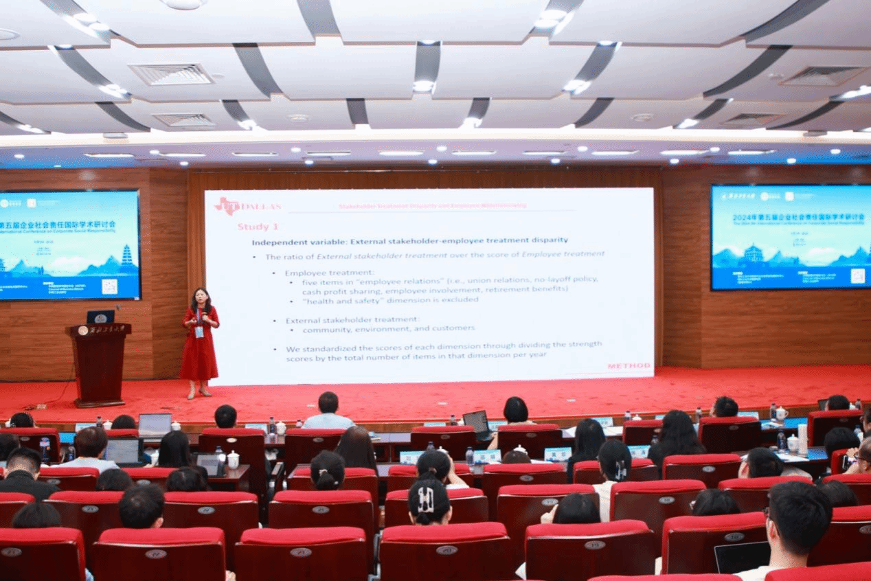 来自新加坡管理大学李光前商公司的Prof. Heli Wang分享了题为《The Spillover Effect of Mandatory CSR Regulations on Corporate Social Irresponsibility》的研究。来自德克萨斯大学达拉斯分校的Prof. Cuili Qian分享了题为《Stakeholder Treatment Disparity and Employee Whistleblowing: A Multi-Stakeholder Framework》的研究。