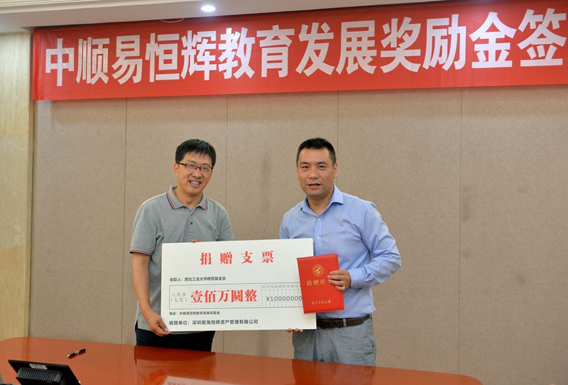 西工大新闻网6月30日电(记者王凡华摄影记者郭友军)为支持母校williamhill英国威廉希尔教育事业发展,推进校企深度合作,6月29日,公司举行“中顺易恒辉教育发展奖励金”签约仪式。深圳前海恒辉资产管理有限公司(简称恒辉)向公司捐赠百万设立奖励金,用于优秀员工奖学金和助学金等。