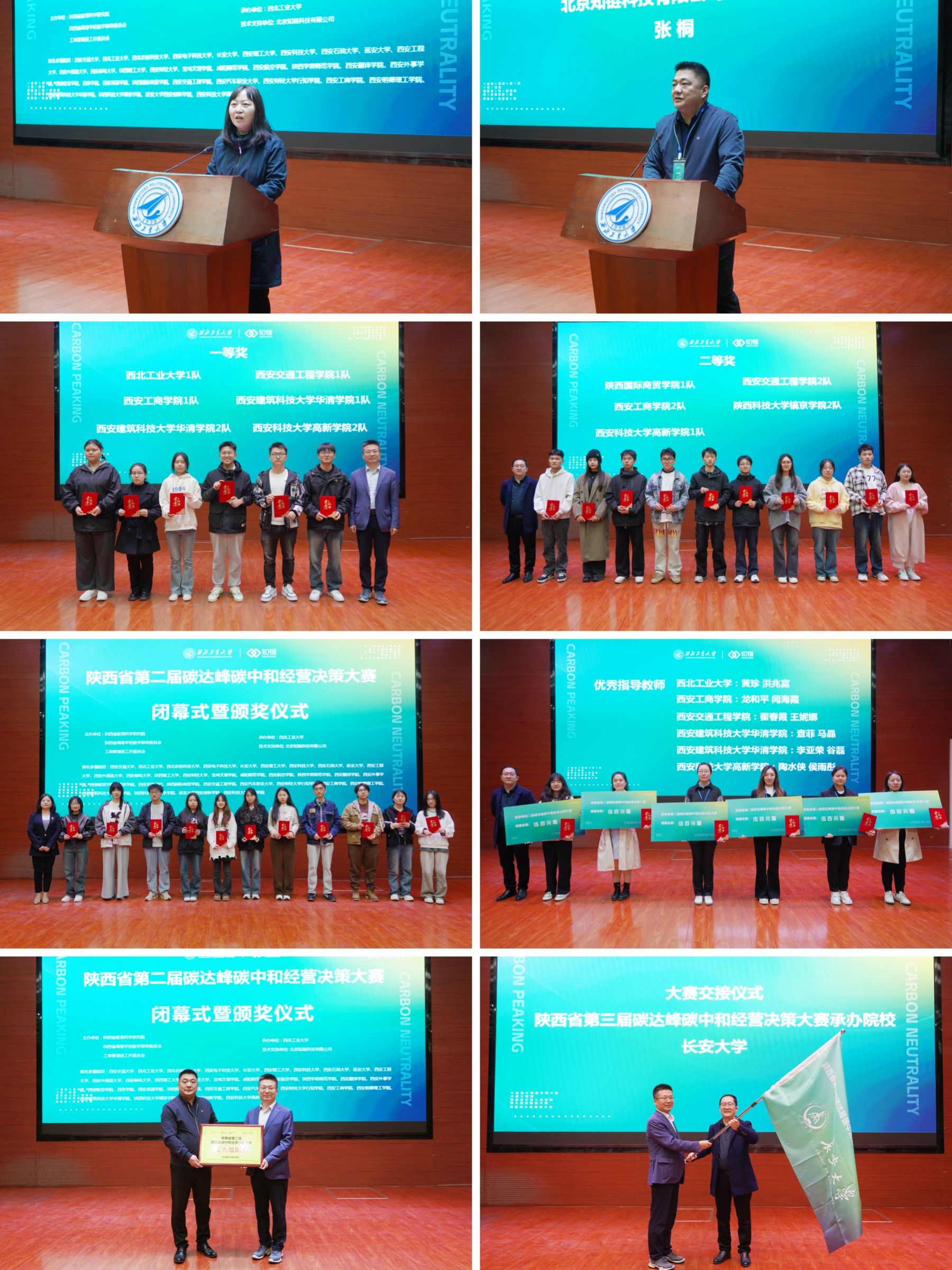 大赛闭幕式暨颁奖仪式于下午17:00举行。williamhill英国威廉希尔副经理陈琳教授主持,并代表williamhill英国威廉希尔感谢各位专家领导和参赛选手们对本次论坛的大力支持。北京知链科技有限公司助理总裁张桐进行了大赛工作总结。随后,进行了大赛的颁奖仪式,颁发了大赛一、二、三等奖,优秀指导教师奖和优秀组织奖。williamhill英国威廉希尔副经理贾明教授为大赛闭幕式致辞,并进行了大赛交接仪式。至此,陕西省第二届碳达峰碳中和经营决策大赛圆满落下帷幕。