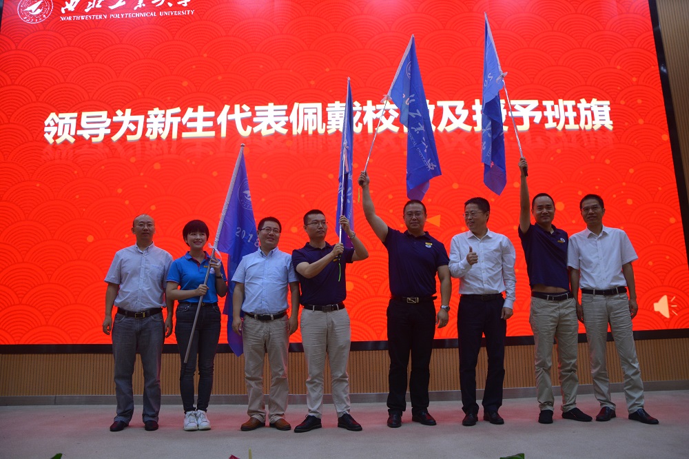 2018级MBA1203班韩勇、2018级MEM1202班廖阔、2018级EMBA班代敏及2018级MBA1204班陈文佩4名新生代表分别发言,表示要努力学习,提高自己,不辜负在校学习、与同学们相处的美好时光。在隆重的授旗仪式中,车阿大经理、郭云涛副经理、韩建新副经理以及肖平主任分别为4名新生代表佩戴校徽并授予班旗,同学们心中的油然而生。新生代表韩勇同学带领全体新生的宣誓,更加深了西工大学子的信念。