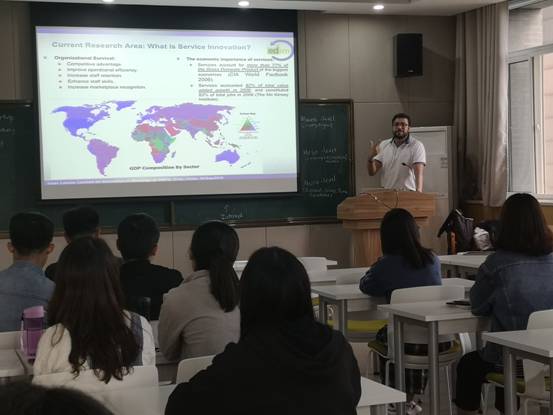 第三部分中,Lemus副教授结合来访中国后的所见所闻,与大家分享了多个关于创新的案例:从黑莓手机到给用户带来全新体验的苹果手机;从磁带、DVD和CD等音像制品发展到ITunes、酷狗和网易云等音乐软件;从Booking订房网站到Airbnb等新商业模式出现;从仅仅为顾客提供食品的快餐厅到Starbucks致力于为顾客打造一个除家庭和办公室以外的舒适的社交聚会场所。这些新商业模式的建立,使音乐分享合法化、外出旅行居住家庭化、社交聚会场所舒适化,而极大地丰富了人们的生化。