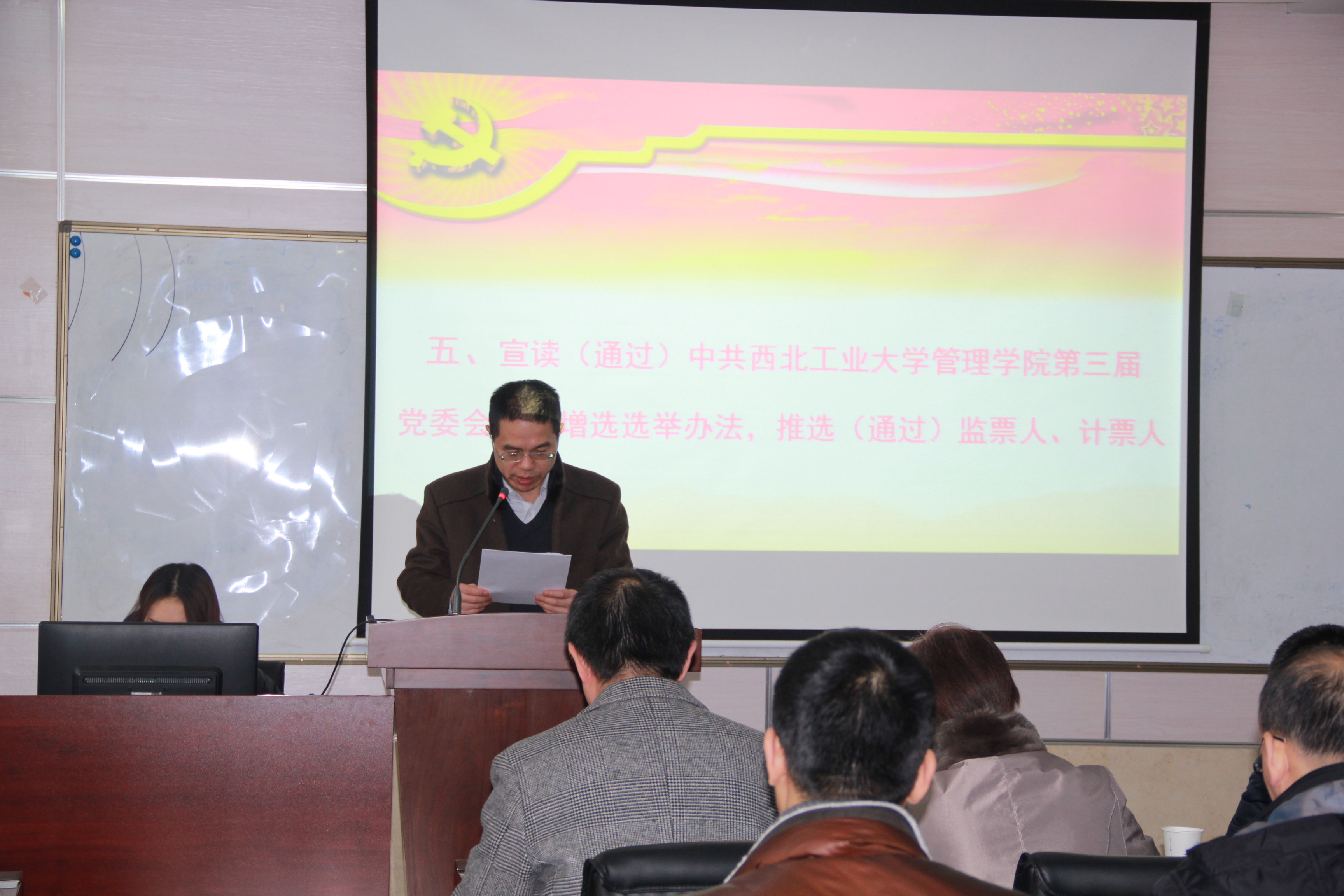车阿大同志宣读了《中共williamhill英国威廉希尔第三届党委会委员增选选举办法》,大会集体审议通过了大会选举办法、监票人与计票人建议名单。