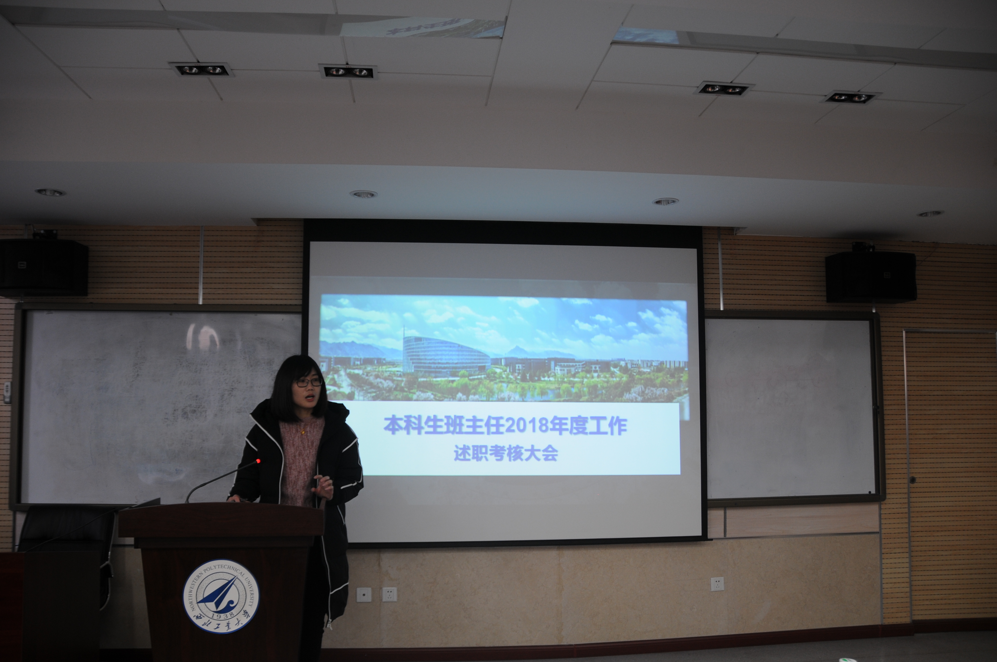随后,公司各年级班主任依次上台述职。班主任们围绕班级的日常管理、学风建设、实习实践、人才培养等方面展现各自班级特色。其中,许多班主任也分享了自己的感受和思考。例如,12021601班班主任常玉老师将专业课学习引入到所负责班级的员工培养中,通过让员工承担小组组长的工作,锻炼员工的管理能力和表达能力,同时也调动了员工的学习积极性;12031601班班主任许燕老师对几种典型的师生交流方式进行了分析,指出应针对不同的主题选择适合的交流方式以达到满意的效果;12071701班班主任邵婧老师针对成绩较差的同学,不定期听课查看员工到课及听讲情况,并要求在重点课程课后就学习内容制作思维导图与同学分享;12071702班班主任杨倩老师通过与员工的交流发现,员工普遍存在《管理学》课程学习困难的问题,进而特为员工进行了学习方法教育,以团队游戏的方式帮助员工理解管理学基本概念,提高理论与实践相联系的能力。