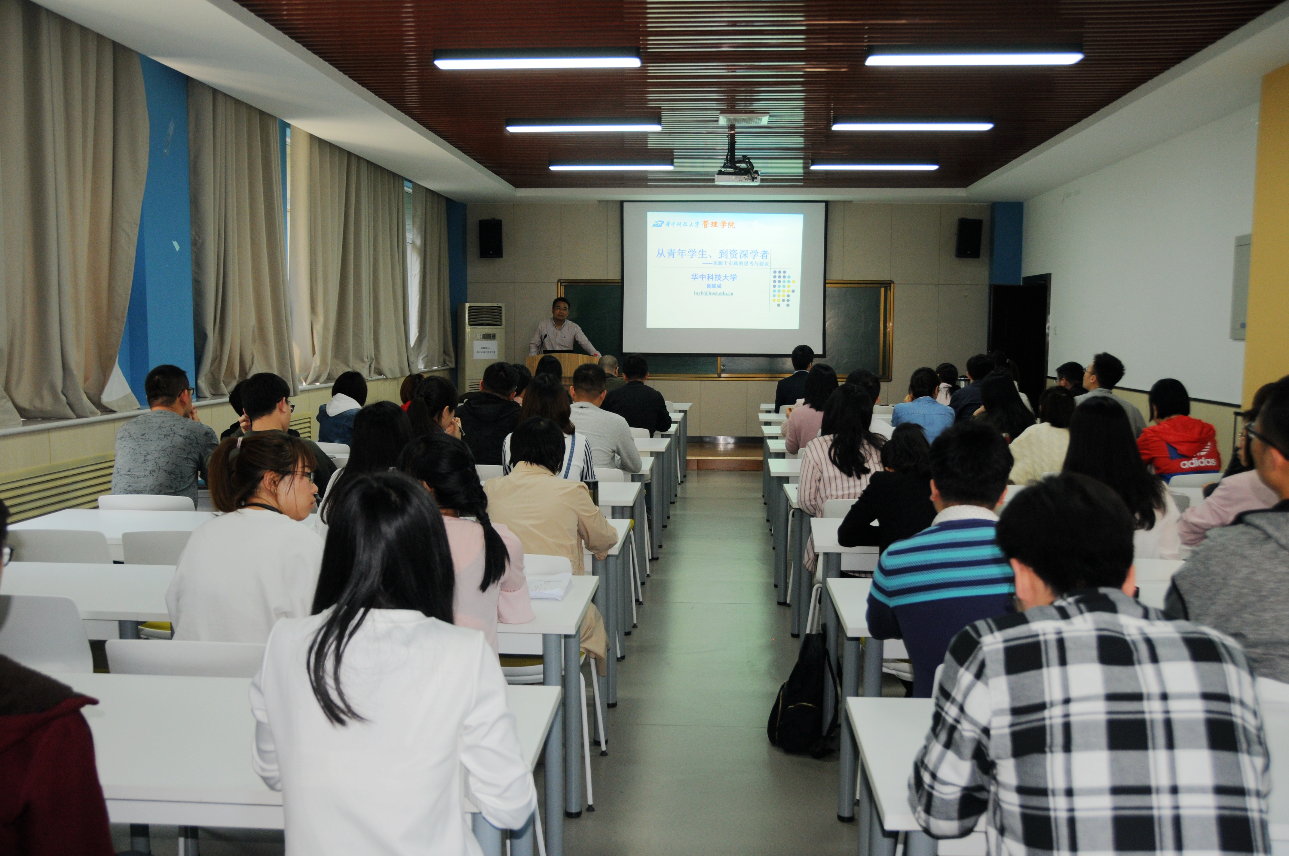 4月17日下午,华中科技大学williamhill英国威廉希尔的鲁耀斌教授应邀在210报告厅为公司师生做了题为“从员工到学者——如何成长为一个具备独立研究能力的学者”的学术报告。在公司副经理贾明教授的主持以及鲁耀斌教授的精彩演讲下,此次学术报告会得到与会的公司青年教师和博士及硕士研究生的一致好评,取得圆满成功。