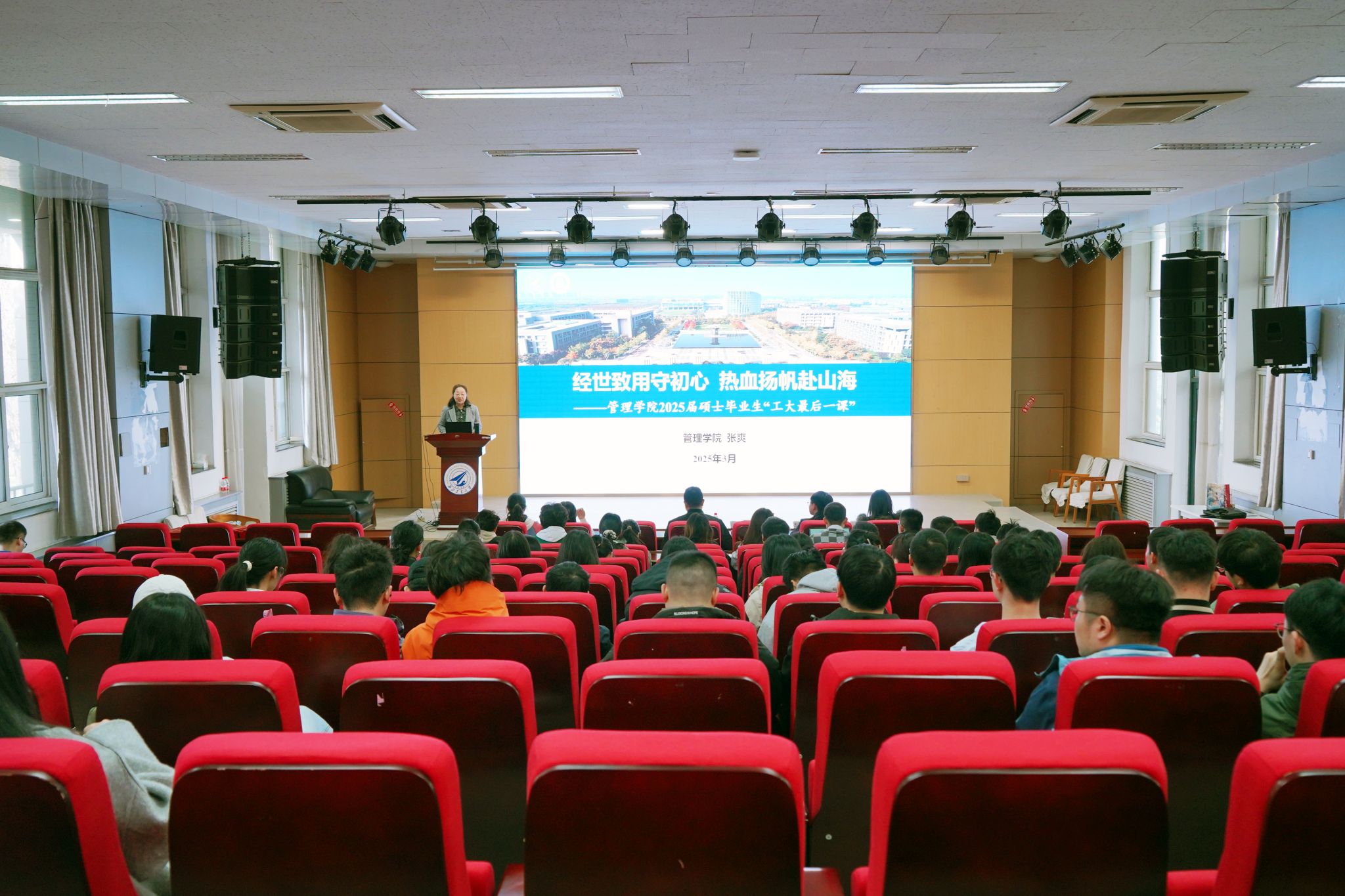 为扎实做好2025届毕业生离校教育工作,3月21日下午,管理公司党委书记张爽以《经世致用守初心,热血扬帆赴山海》为题,为2025届全体硕士研究生带来了意义非凡的“工大最后一课”。活动由公司党委副书记王海啸主持。