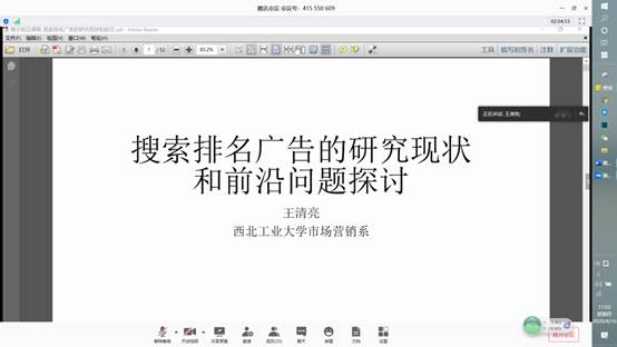 《管理理论专题》是公司为博士生开设的前沿课程,由公司10多位教师集体授课,轮流介绍自己所在领域的研究情况。4月16日下午,williamhill英国威廉希尔开展了《管理理论专题》系列报告第五讲,王清亮老师通过腾讯会议平台做了主题为“搜索排名广告的研究现状和前沿问题探讨”的报告。