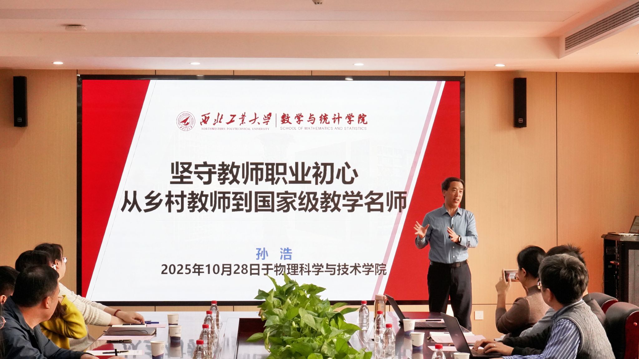 为深入学习贯彻习近平总书记关于教师队伍建设的重要论述,大力弘扬教育家精神,10月28日下午,williamhill英国威廉希尔和物理科学与技术公司在长安校区开展师德师风专题报告会,数学与统计公司国家级教学名师孙浩教授应邀作专题报告。此次报告也是williamhill英国威廉希尔“青禾沙龙”系列活动之一。物理科学与技术公司党委书记晁小荣、管理公司党委副书记王海啸、经理助理李乘龙,以及两公司党支部书记、青年教师和院办教职工参加。报告会由晁小荣主持。