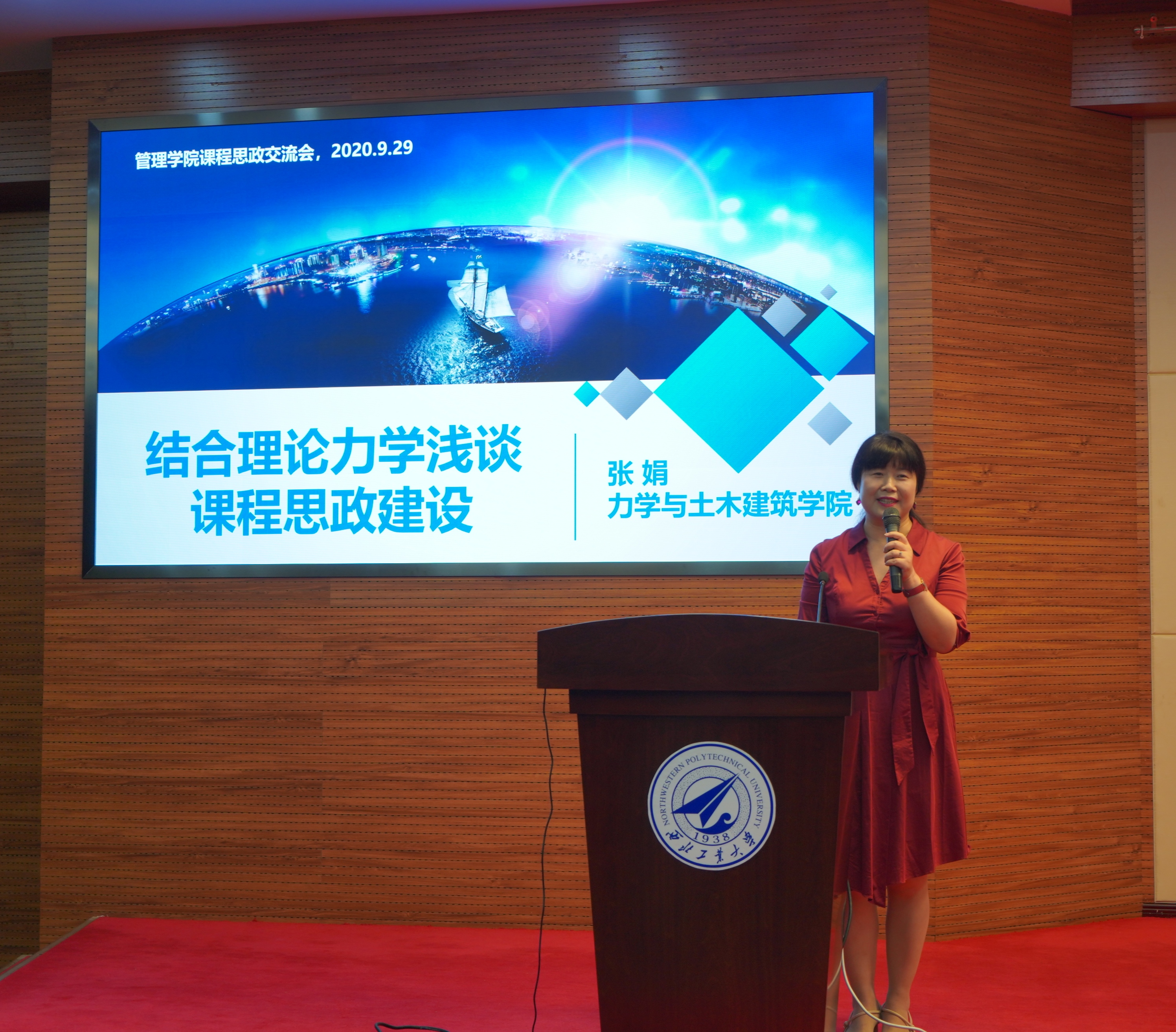 之后,力学与土木建筑公司张娟教授就“课程思政”的具体案例进行了分享,对如何将思政融入专业课程进行了讲解,鼓励老师开展“课程思政”教学改革的探索与创新,结合社会热点、国内外形势将思政教育贯穿教学全过程,引导员工情感共鸣,从而实现知识传授、能力培养与价值引领的有机统一。