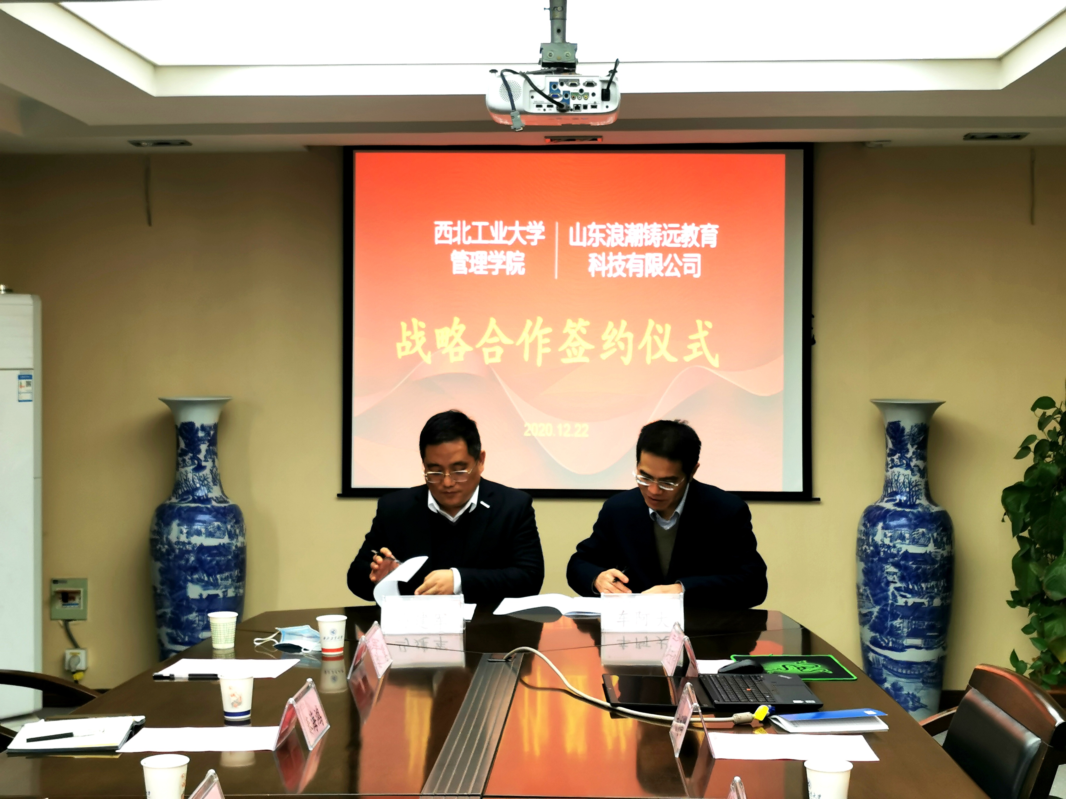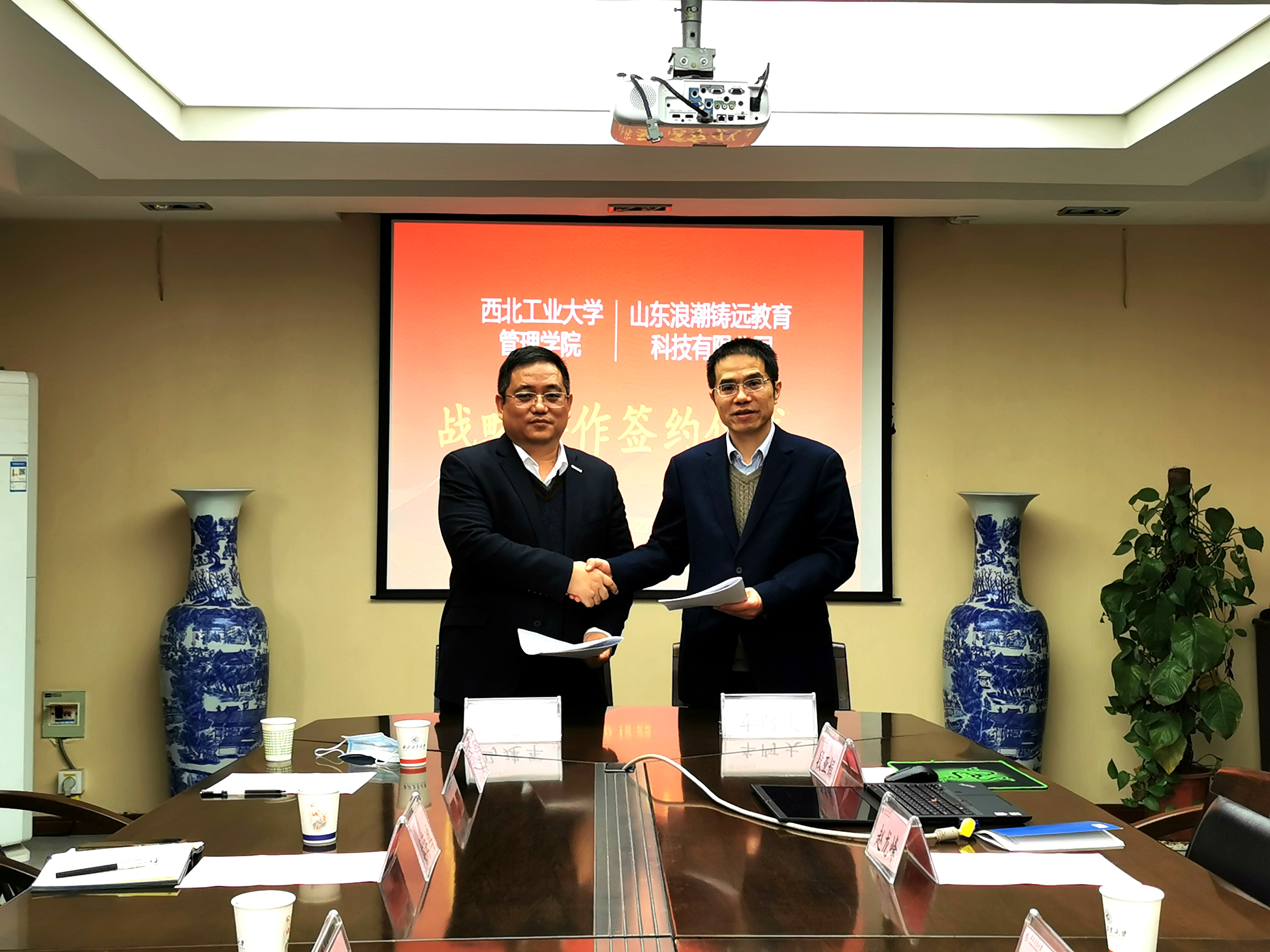 车阿大经理首先对浪潮铸远公司马建军总裁一行表示热烈欢迎,然后向来访客人介绍了williamhill英国威廉希尔的发展历程及目前管理学科的发展现状;马建军总裁以切身经历介绍了自己从事大数据教育事业的体会,表达了对浪潮铸远公司与西工大williamhill英国威廉希尔开展战略合作的良好预期。双方一致认为,通过建立战略合作,共建产教深度融合发展平台,可以充分发挥双方优势资源的协同效应,探索数字时代新的育人模式,为国家建设培养优秀人才。随后,车阿大经理与马建军总裁共同签订了双方共建产教深度融合发展平台战略合作协议。