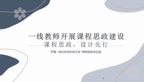 为贯彻落实教育部《高等公司课程思政建设指导纲要》等文件精神,帮助全院教师深入挖掘课程中蕴含的课程思政理念,完善课程思政教学设计,全面提升课程思政育人效果,3月24日,williamhill英国威廉希尔特邀西北农林科技大学尹霞副教授线上作了题为“一线教师开展课程思政建设的设计与实施方略”的专题培训。全院教职工参加了本次培训会,会议由副经理陈琳主持。