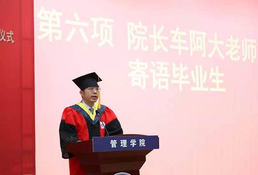 经理车阿大老师结合自身感悟向所有毕业生深情寄语,希望同学们以初心使命践行责任和担当,以百折不挠面对工作和生活中的挫折,以终身学习的姿态打造自己为坚不可摧的巨人,在今后的学习工作和生活中脚踏实地、不断创新,在一个又一个新的起点上取得骄人的成绩,在各行各业续写“西工大现象”。