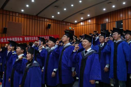 随后公司领导为全体毕业生逐一拨穗。硕士毕业生张淞带领全体2021届毕业研究生宣读毕业誓词。