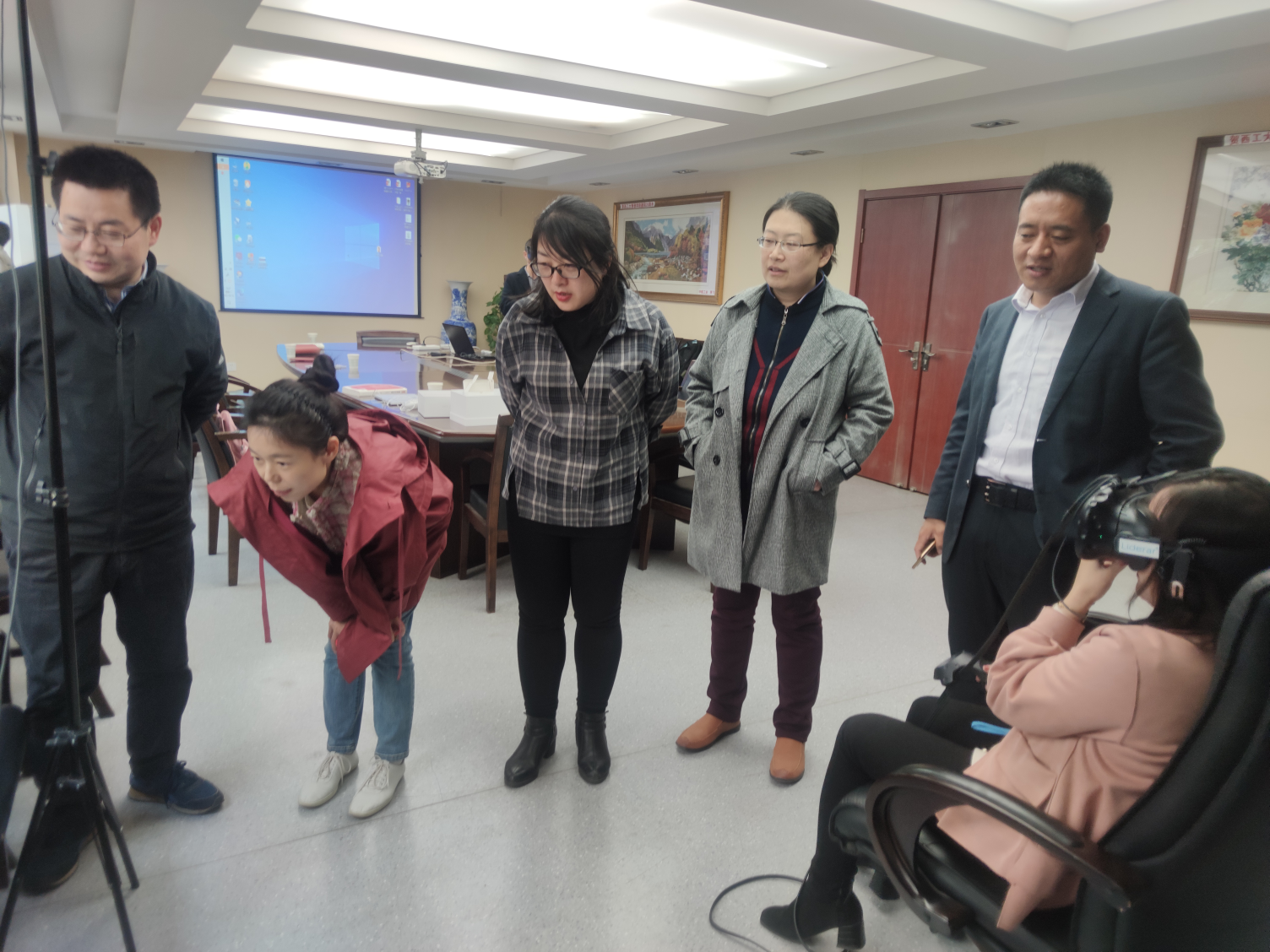 张老师首先对项目背景和建设内容进行了介绍。然后,北京领途教育的技术人员介绍了VR大数据领导力测评的VR场景设计与实现原理,并带领与会老师进行了VR测评体验。随后,双方对后续合作进行了交流。