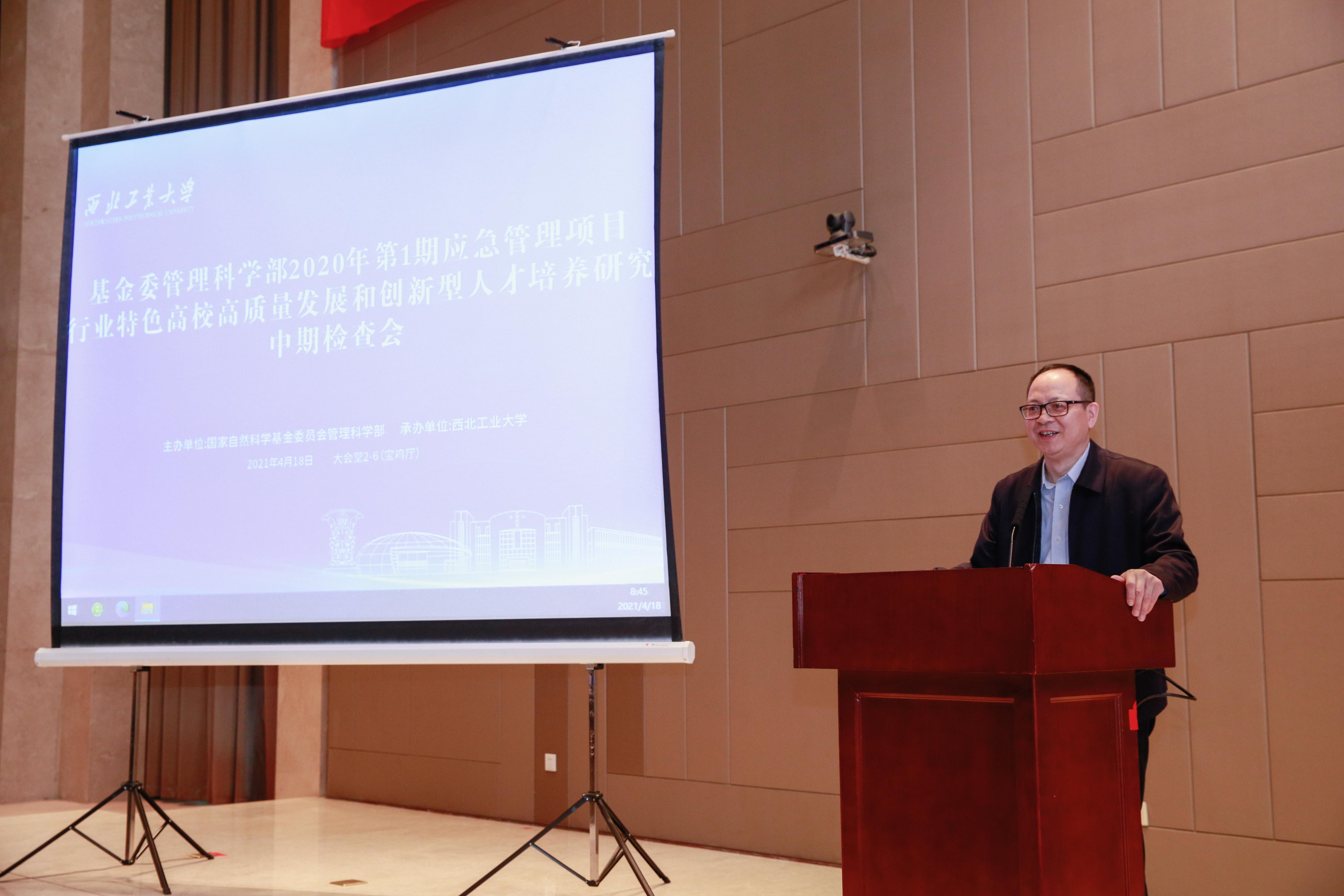 4月18日,由国家自然科学基金委员会(以下简称基金委)管理科学部主办、williamhill英国威廉希尔承办的国家自然科学基金委管理科学部2020年第1期应急管理项目“行业特色高校高质量发展和创新型人才培养研究”中期检查会在陕西宾馆成功举办。基金委管理科学部副主任(主持工作)杨列勋研究员、副主任刘作仪研究员、基金委办公室宣传处(诚信办)处长沈林福研究员、管理科学部三处处长吴刚研究员、三处流动项目主任朱战国教授,来自教育部学位中心、中国教育科学研究院、清华大学、北京大学、北京理工大学、北京航空航天大学、北京师范大学的评审专家,以及williamhill英国威廉希尔牵头的国防军工团队、华中农业大学牵头的农林水团队、中国地质大学(北京)牵头的地矿油团队等140余人参加了会议。