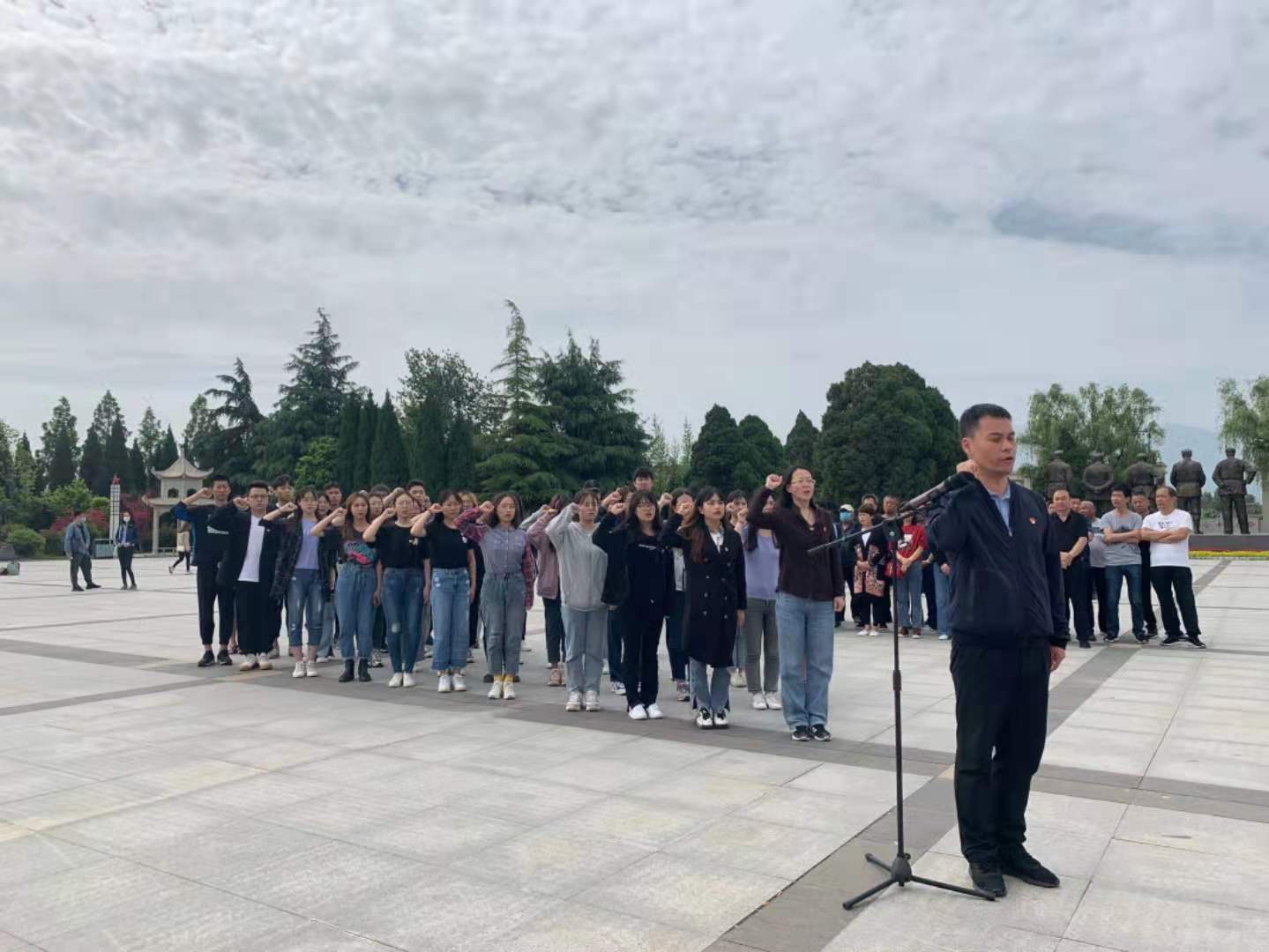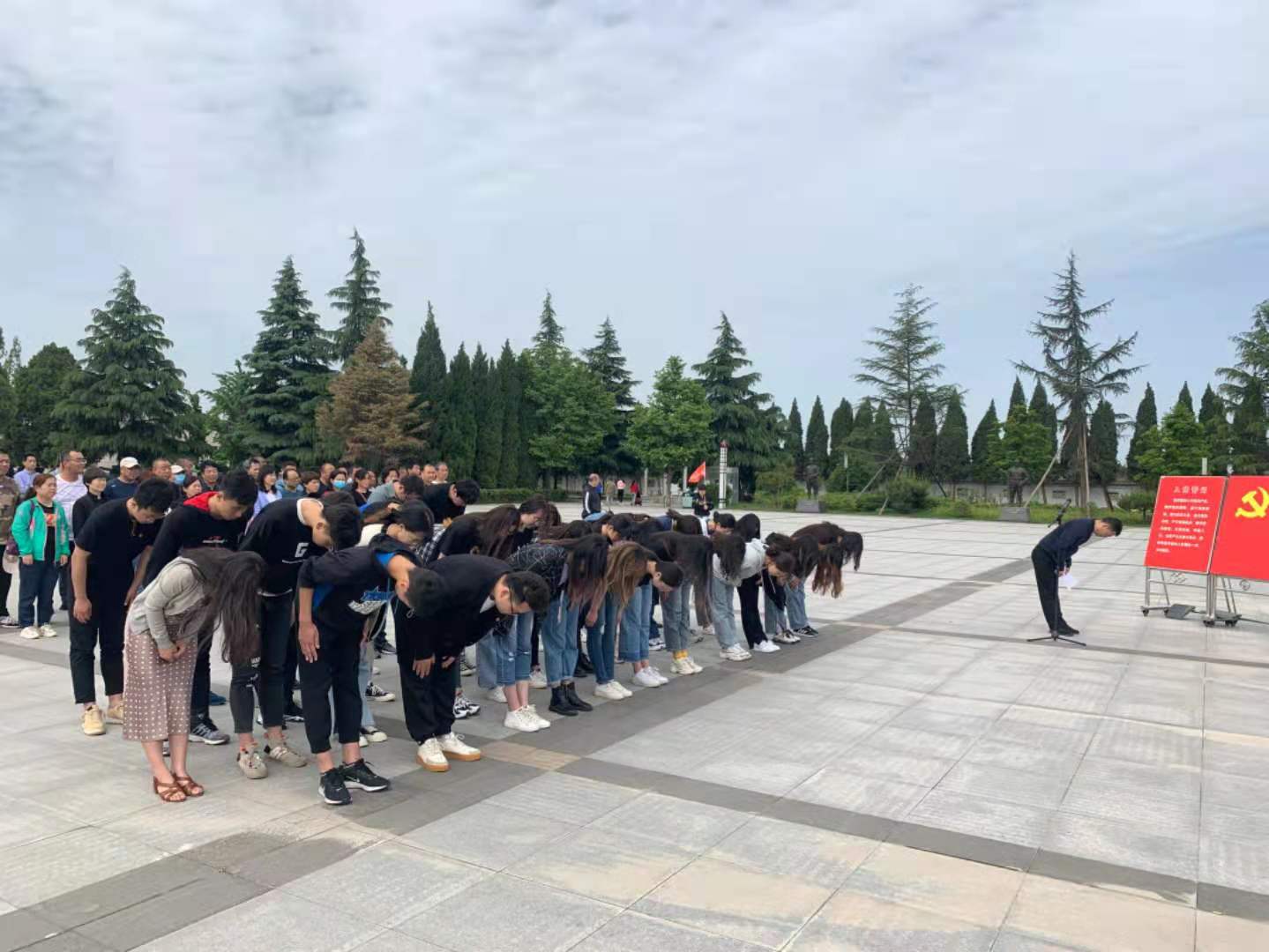 在公司党委副书记樊琳的主持下,全体师生在扶眉战役烈士纪念碑前举行了庄重简朴的悼念仪式。首先全体师生向革命烈士默哀,接着由辅导员老师代表公司向扶眉战役烈士敬献花篮,随之全体师生向烈士们鞠躬致敬,随后,樊琳带领全体党员同志面向党旗重温入党誓词。最后,由全体师生合唱歌曲《没有共产党就没有新中国》。