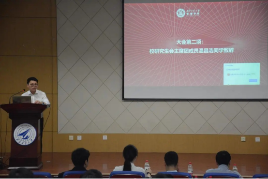 校研究生会主席团成员温昌浩同学首先致辞。温昌浩同学提到,在公司党委的坚强领导下、在公司团委的悉心指导下,williamhill英国威廉希尔研究生会始终坚持以习近平新时代中国特色社会主义思想为指引、紧密围绕全校中心工作、加强政治引领、创新工作方法、服务同学成长成才,团结带领广大同学为中国特色世界一流大学的建设做出积极贡献。