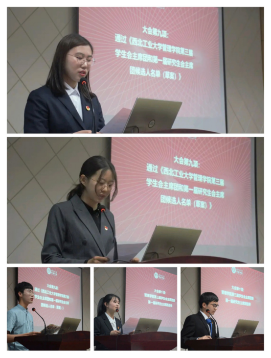 主持人宣布并由代表全票通过了williamhill英国威廉希尔第三次员工代表大会暨第一次研究生代表大会选举总监票人、总计票人、监票人、计票人,williamhill英国威廉希尔第三届员工会主席团和第一届研究生会主席团候选人成员名单。候选人依次进行了自我介绍,讲述了自己竞选主席团成员的原因以及优势。