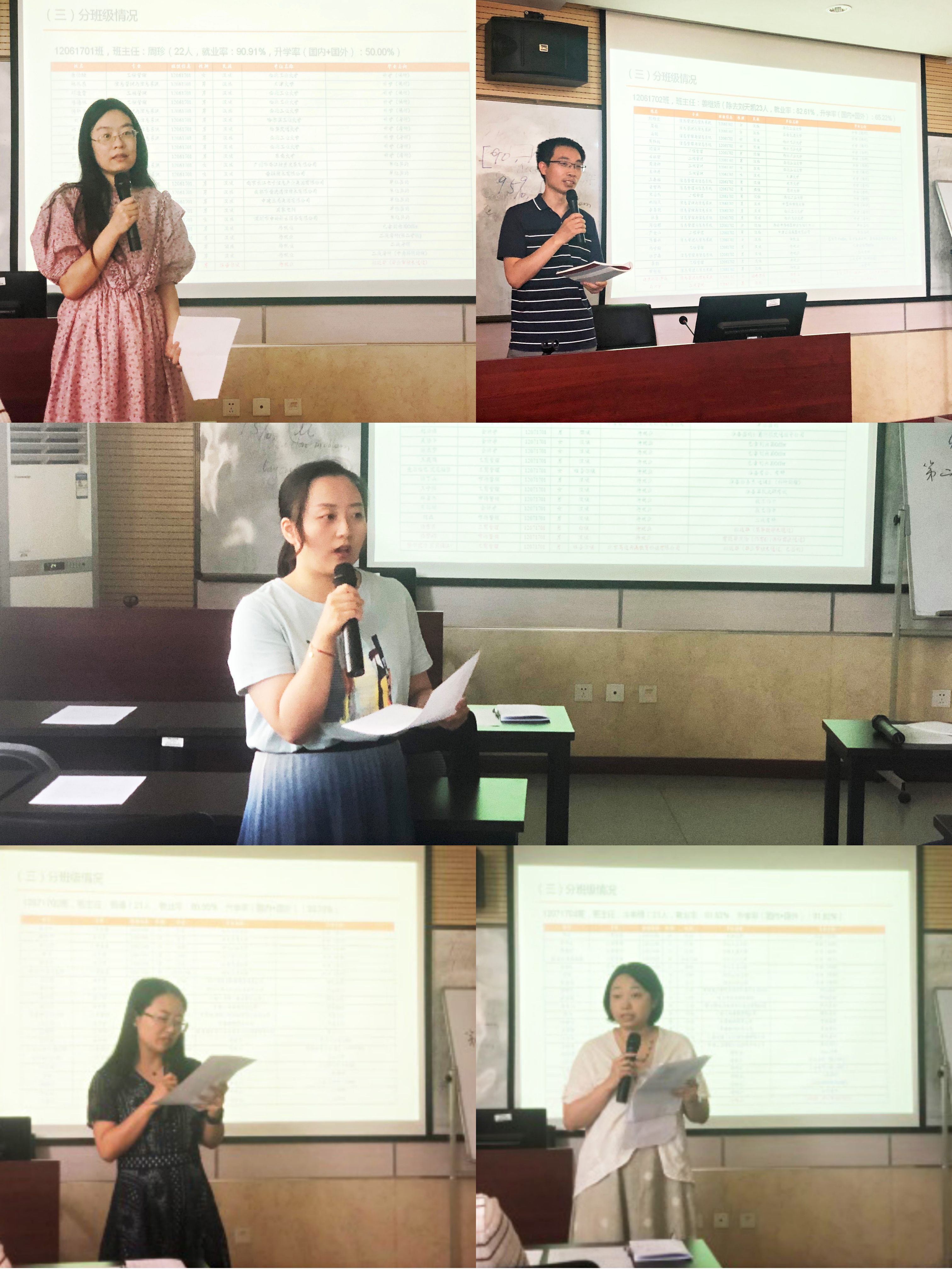 其他年级班主任分别从员工的思想状况、学业发展、专业认知、主要存在问题和进一步工作计划等方面,对各班的整体情况进行了详细介绍。