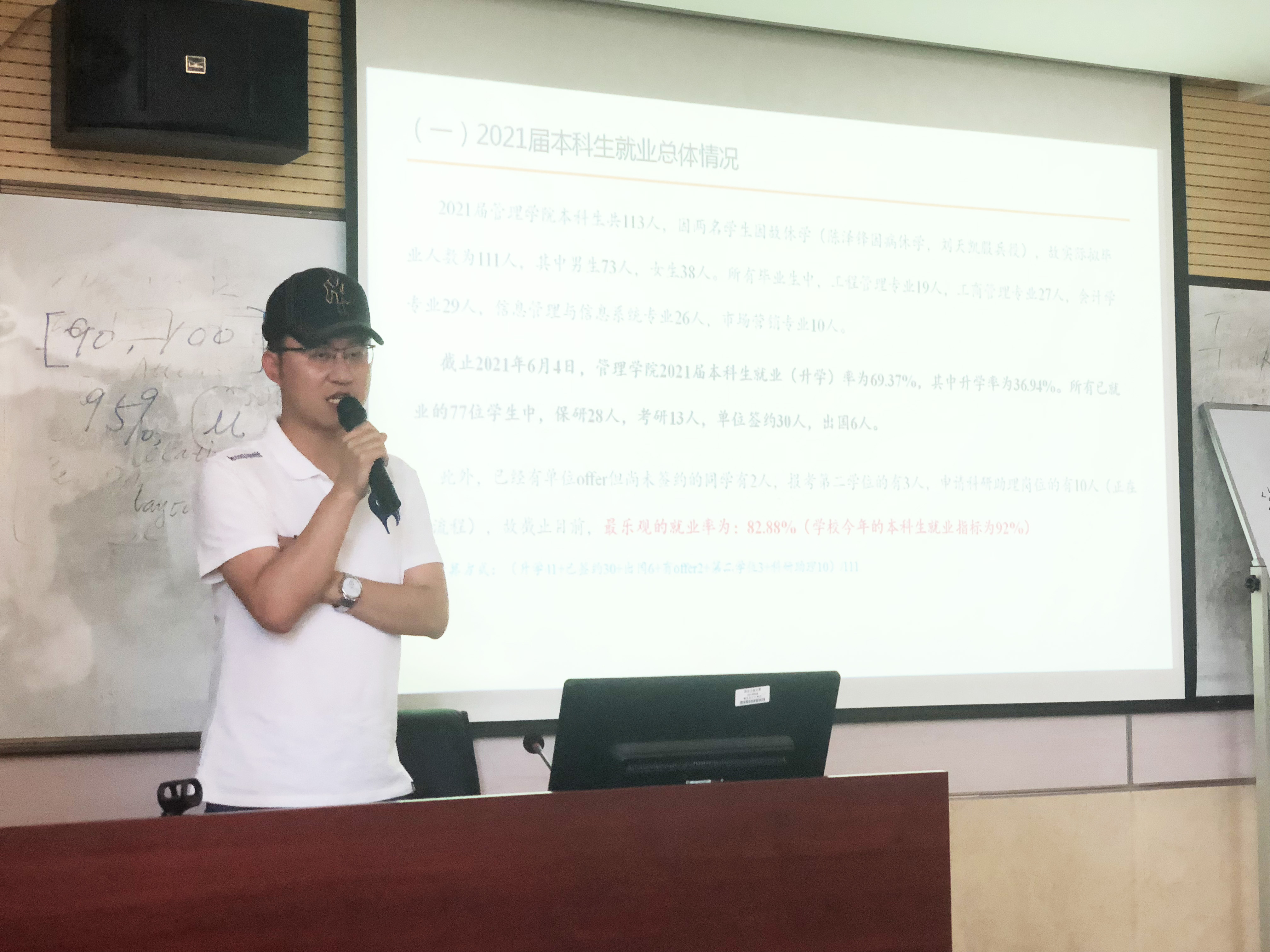 首先,2017级辅导员封华对2021届本科生的升学、就业情况进行了全面细致的介绍,针对“已就业员工情况”、“未就业员工情况”和“学习困难员工情况”为班主任给出详实数据。