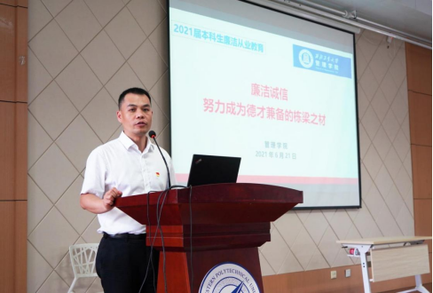 樊琳以“廉洁诚信,努力成为德才兼备的栋梁之才”为主题,用生动形象的案例引出话题,以公司陈士橹院士清廉勤勉做学术等事例,勉励毕业生在今后的道路上要廉洁从业、诚实守信、无愧于心。樊琳老师指出,值此共产党成立一百周年之际,2021届毕业生要从南山脚下出发,走向各自新的征程,在未来的工作学习中要坚持八小时以外和八小时以内一个样,要用严格的道德标准要求自己,要为我国社会主义事业不断奋斗。