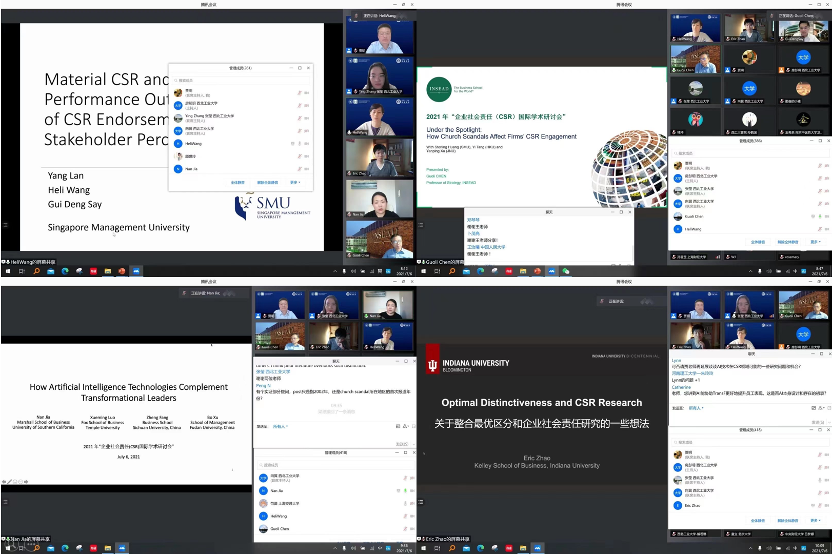 由williamhill英国威廉希尔新时代企业高质量发展研究中心(IHCD)、williamhill英国威廉希尔、williamhill英国威廉希尔团队建设办公室主办,中国管理研究国际学会(IACMR)、《Journal of Business Ethics》期刊(JBE)协办的2021年“企业社会责任(CSR)国际学术研讨会”于2021年7月6日至7日在腾讯会议线上召开。会议主席由williamhill英国威廉希尔副经理、新时代企业高质量发展研究中心主任贾明教授担任。大会共接收论文投稿66篇,从其中选择报告论文16篇。会议共组织了4场大会特邀报告,4场平行论坛报告,来自新加坡、法国、美国以及国内高校、院所的430余位代表出席了会议。