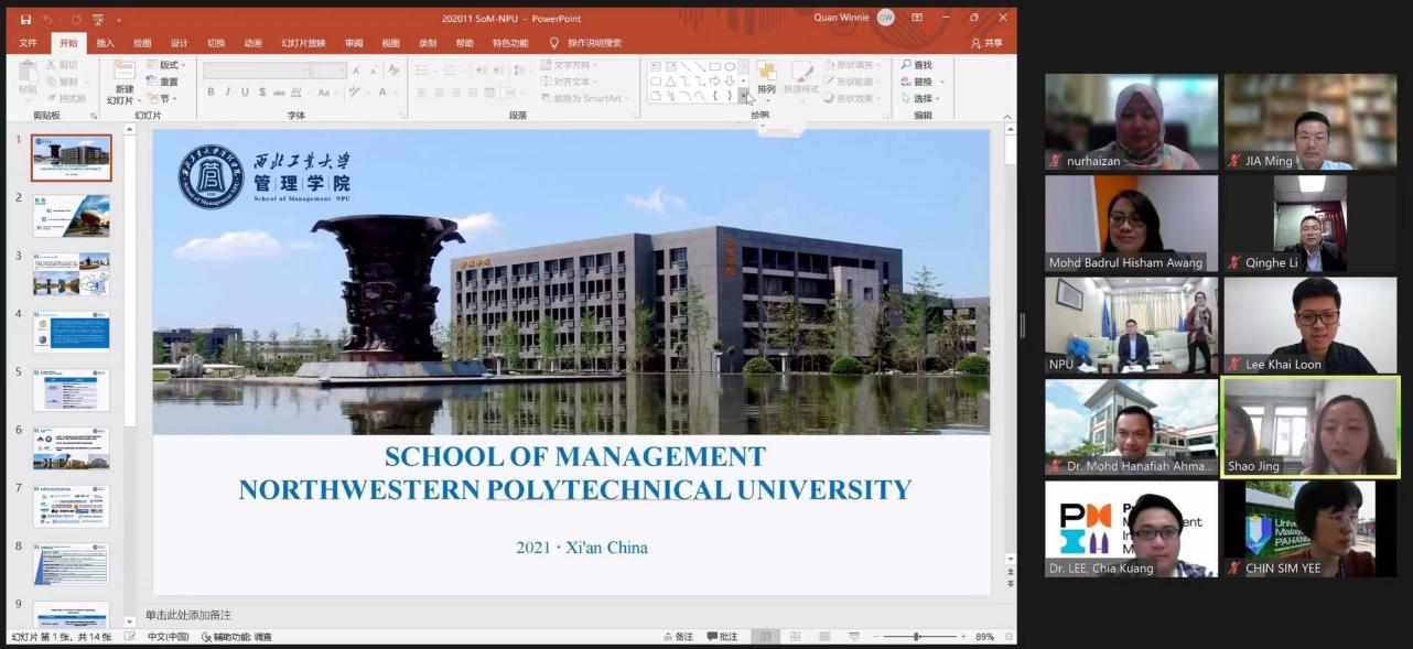 2021年10月27日,马来西亚彭亨大学(简称UMP)工业williamhill英国威廉希尔与williamhill英国威廉希尔开展合作项目线上洽谈会。彭亨大学工业williamhill英国威廉希尔经理Mohd Hanafiah Ahmad ,副经理Kyle Lee Khai Loon ,项目主管Nurhaizan Mohd Zainudin ,课程主管Lee Chia Kuang, ChengJack Kie,彭亨大学战略学术合作中心主任Chin Sim Yee ,彭亨大学中国联络办公室负责人李清和以及公司国际教育公司副经理李自伟,招生办公室主任陈思危,国际招生负责人李梦晨,williamhill英国威廉希尔副经理贾明,经理助理邵婧,外事秘书权梦甜子参与此次会议。