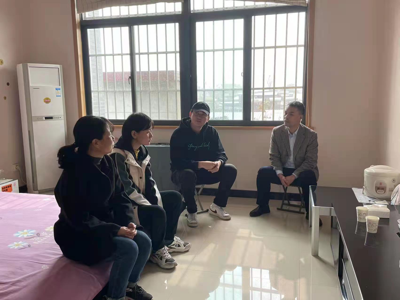 在走访过程中,樊琳书记与各位辅导员对员工的住宿环境和卫生情况进行了详细的了解,针对生活中可能存在的安全隐患进行了仔细排查,并对员工进行了用火用电等方面的安全教育,叮嘱员工注意安全,同时要保持良好的生活卫生习惯和作息习惯。同时,辅导员老师们还向员工强调要与家长、同学、老师保持联系,遇到困难或疑惑及时反馈,并做好定期报平安工作。