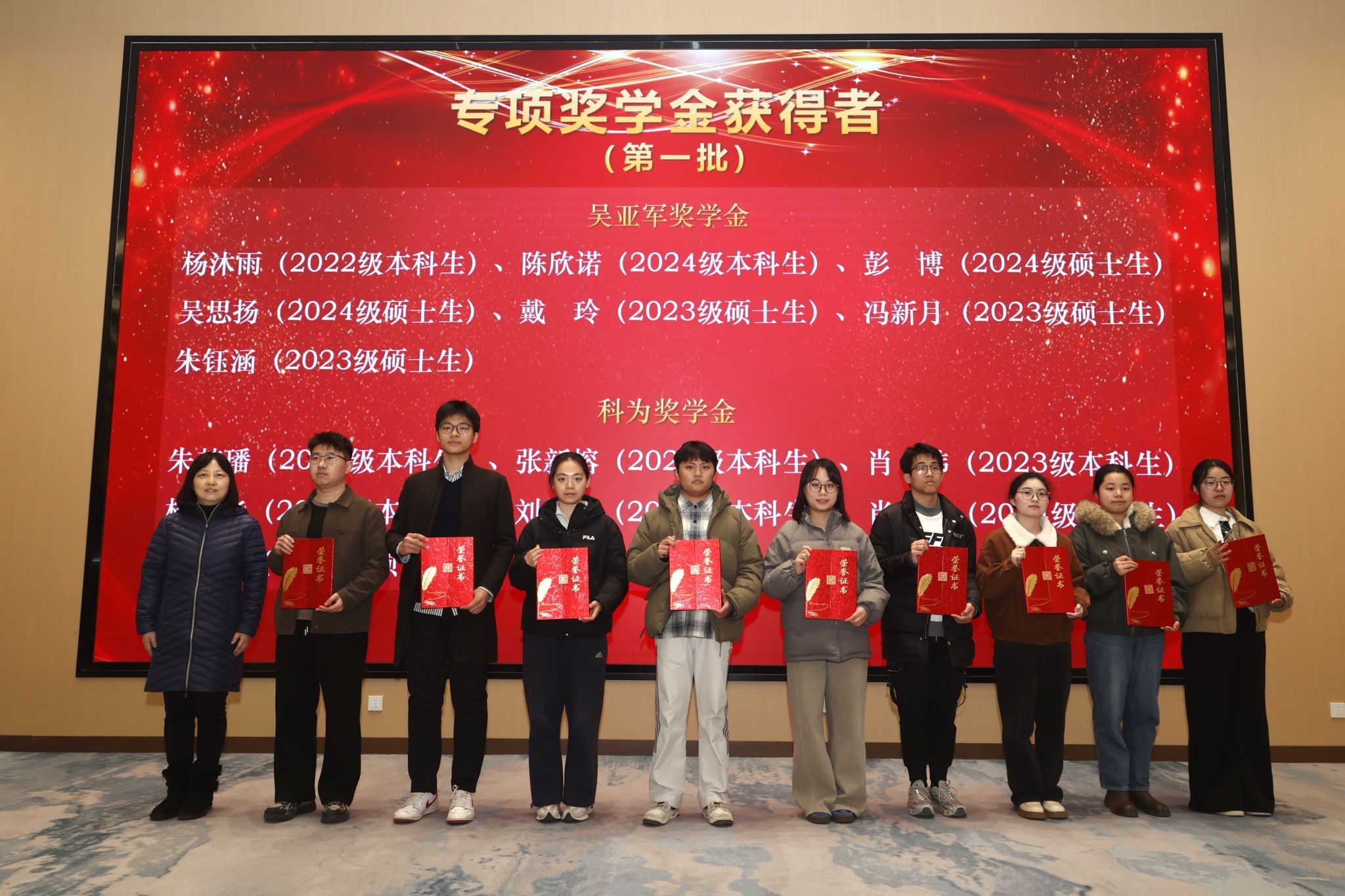 陈琳、王海啸为专项奖学金获奖代表颁奖