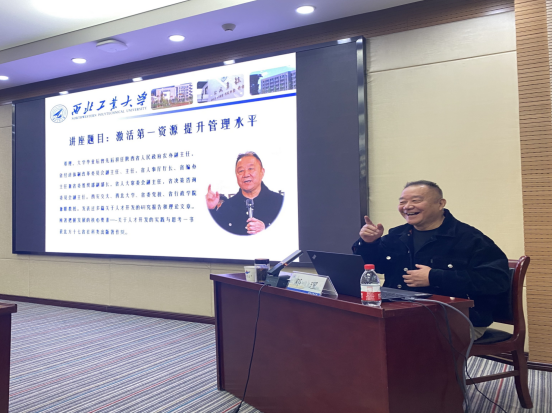 邓理以幽默风趣的讲课方式着重分析了“正确认识人才是前提;健全人才制度是基础;用心尊重人才是关键;人尽其才是目的;以德为先、发展是第一要务,创新是第一动力;软实力硬实力归根到底要靠人才实力”六个问题,强调激活人才应从选才、用才、引才、育才全方面着手。
