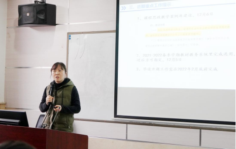 副经理陈琳就新修订的《williamhill英国威廉希尔教材编写、选用审核管理办法》文件内容进行了说明,对在新时代下学术规范、学术道德以及教材建设等方面提出的新要求进行了解读,并就本科教学质量期中检查情况进行了反馈,对近期教学重点工作进行部署安排。
