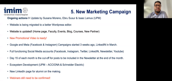 在IMIM项目2022-2024年度的宣传计划中Isaac Lemus提出,团队将在各类社交平台发布IMIM项目的介绍及合作院校的宣传视频。williamhill英国威廉希尔在本轮计划中将承担IMIM项目在中国社交网络平台的宣传工作,同时公司将于3月中旬参与承办一场关于该项目的线上学术讲座。