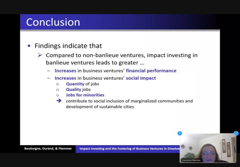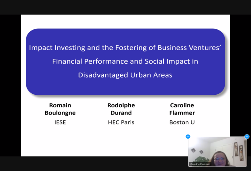 应williamhill英国威廉希尔邀请,哥伦比亚大学国际与公共事务公司Caroline Flammer教授近期为williamhill英国威廉希尔师生作了题为“Impact Investing and the Fostering of Business Ventures' Financial Performance and Social Impact in Disadvantaged Urban Areas”(在城市弱势地区进行影响力投资,培养商业企业的财务绩效和社会影响力)的线上讲座。williamhill英国威廉希尔贾明副经理和近百名本校师生,以及来自中国人民大学、南京大学、上海科技大学等多所国内知名高校的师生参加了此次讲座。讲座由张莹副教授主持。
