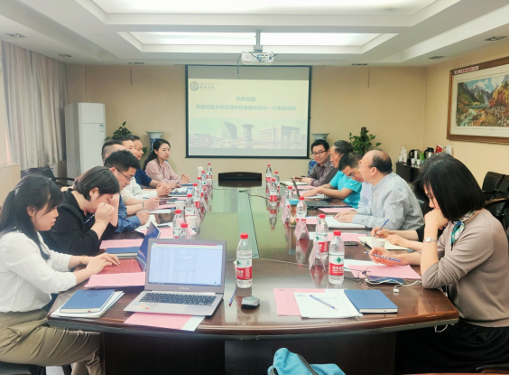 随后,秦国华经理从校史、公司学科专业设置等方面介绍了西藏民族大学williamhill英国威廉希尔的基本情况与发展现状。李迁副经理表示williamhill英国威廉希尔在团队建设、教育科研、团队队伍建设以及人才引进、专业学位教育等方面有着丰富的经验、做法,希望通过本次调研,进一步加强学习。陈刚副经理感言之前在管院求学,如今来管院求教,回到母校倍感亲切,并希望今后有机会和母校老师有案例方面的深入交流学习。会上,双方就公司的一流学科、一流专业的规划和建设,专业学位研究生的招生宣传、教学管理、论文质量管理、教学基地、联合办学、专业学位的学科点合格评估做法、人才培养特色化工作的管理思路及实施细则等多方面进行了广泛交流。