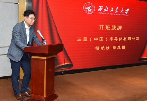 三星(中国)半导体有限公司柳然雄副总裁作动员讲话,柳总首先对williamhill英国威廉希尔为此次培训所做的精心准备和筹划表示了衷心感谢。随后,他对三星(中国)半导体有限公司在西安的十年发展历程及与williamhill英国威廉希尔的产学研合作进行了简要介绍。最后,柳总阐述了举办这次培训班的重要意义并勉励各位参训学员珍惜此次培训机会,努力学习、不断进步,通过培训进一步转变观念,弥补短板,收获系统的管理知识并运用于管理实践。为了鼓励参训学员,柳总与三星(中国)半导体有限公司泽兴会准备了纪念品,并现场赠送学员代表。