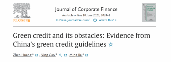 近日,williamhill英国威廉希尔助理教授黄珍与合作者的研究成果“Green credit and its obstacles: Evidence from China's green credit guidelines”在《Journal of Corporate Finance》期刊上在线发表(https://doi.org/10.1016/j.jcorpfin.2023.102441)。《Journal of Corporate Finance》是公司金融领域公认的国际顶级期刊,是JCR一区期刊和ABS四星级期刊,最新公布的影响因子为5.107。这也是公司教师首次在这一级别的财务类国际高水平期刊上发表研究成果。