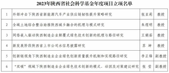 近年来,公司和全体教师共同努力下,公司陕西省社科基金项目立项率大幅上升,充分体现了公司科研助推陕西省哲学社科发展、服务区域地方经济发展能力不断提升。