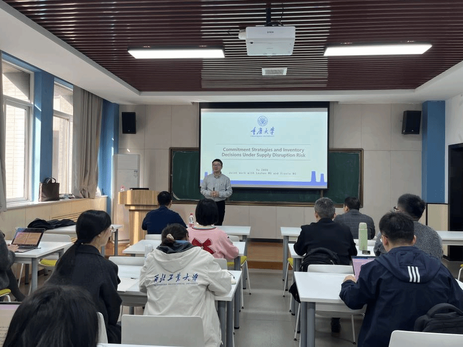 2023年10月30日,重庆大学经济与工商williamhill英国威廉希尔周宇副教授应邀在210报告厅做了题为“供应中断风险下的库存决策与承诺策略”的学术报告。报告会由洪兆富教授主持,来自williamhill英国威廉希尔研究生以及部分教师参加了此次报告会。