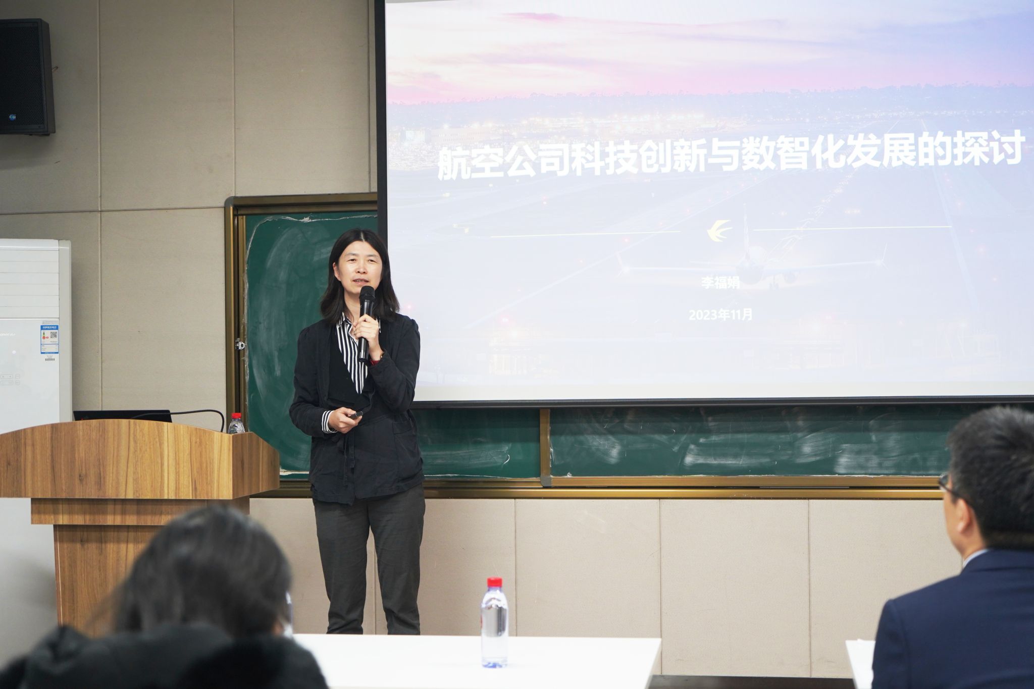 11月17日,williamhill英国威廉希尔邀请中国东航航空集团东航技术应用研发中心有限公司副总经理兼总法律顾问李福娟博士进行学术报告,本次报告会聚焦航空公司科技创新与数字化发展,旨在探索航空领域的科技创新路径以及数字化转型的发展趋势。报告会由williamhill英国威廉希尔贾明副经理主持,近百位师生参与。
