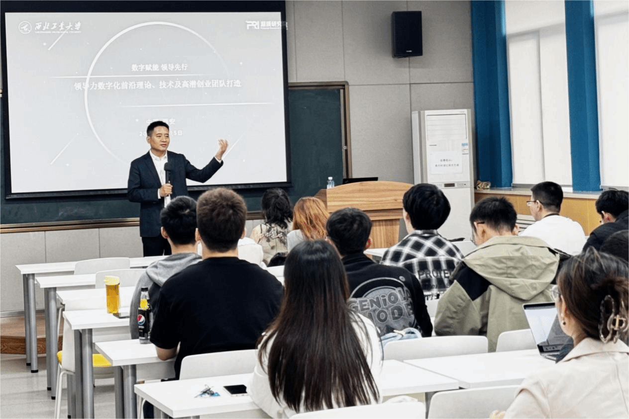 在本次报告中,刘佰明副教授首先从VR领导力潜质测评的跨界研究背景、元宇宙VR与大数据测评、领导力潜质的内含与外延、ChatGPT与AI招聘技术以及相关性混杂性抽样性五个方面来介绍领导力数字化前沿理论、技术的基本内容,让同学们了解了大数据领导力测评的VR场景设计与实现原理。由于VR评估工具具有沉浸感、强交互、多感知的特点,也为科学合理组建高潜创业团队提供了工具。接着,介绍了如何打造一支高潜创业团队,提出了 “同心、同行、同成长型”创业团队的构建方法,同时指出了高潜团队所应该具备的素质和能力、团队未来可能会遇到的挑战及应对等内容。最后的互动问答环节,刘佰明老师就VR大数据领导力测评在高潜团队构建和管理的应用场景给出了详细的解答。