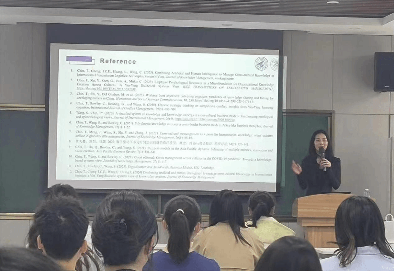 覃大嘉老师汇报交流的系列研究已在《International Journal of Human Resource Management》《Journal of International Management》《Technological Forecast and Social Change》《International Journal of Production Economics》《管理评论》《管理科学》等顶尖中英文期刊上发表,该系列研究从中国传统的阴阳辩证思想出发,创造性的提出了知识创造的阴阳辩证法系统观,在丰富知识管理理论的同时也为跨学科交流提供了新的思路和见解。该研究从知识创造的传统理论出发,在组织知识创造的动态理论等基础上发展出了新的知识创造理论,即知识创造的阴阳辩证法系统观,该理论认为知识创造包含了矛盾、冲突、沟通、妥协和创造五个部分。该理论的提出也为知识管理领域提供了新的思路和参考,其成果受到了海内外学者的高度关注。