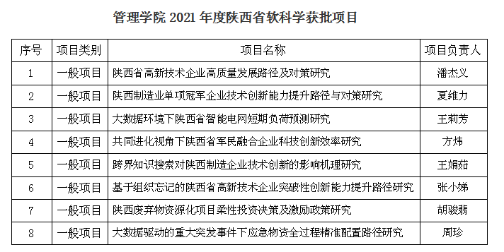 近日,陕西省科技厅公布了2021年度陕西省软科学项目评审结果公布,williamhill英国威廉希尔共申报11项,获得立项8项,立项率达73%,项目直接经费达20余万元。