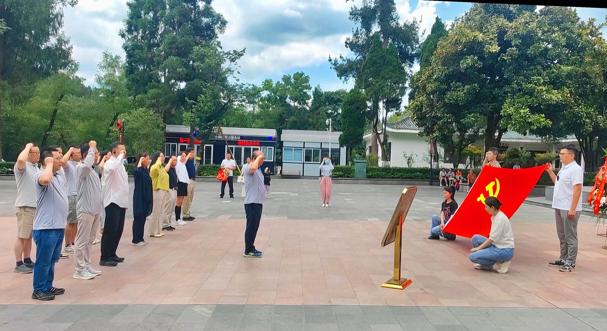 下午,学员们来到遵义红军烈士陵园瞻仰参观。在革命烈士纪念碑前,全体学员于纪念碑前庄严肃立,向为民族解放和人民革命事业英勇献身的先烈鞠躬默哀并敬献花篮。在郭云涛副经理的带领,大家面向烈士纪念碑紧握右拳,重温入党誓词。